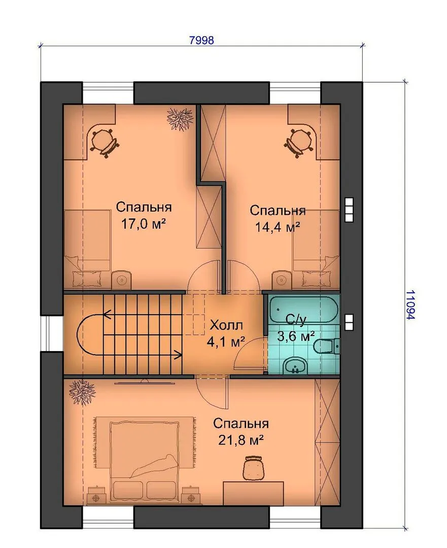 Заказать конусльтацию по:Проект двухэтажного дома №13