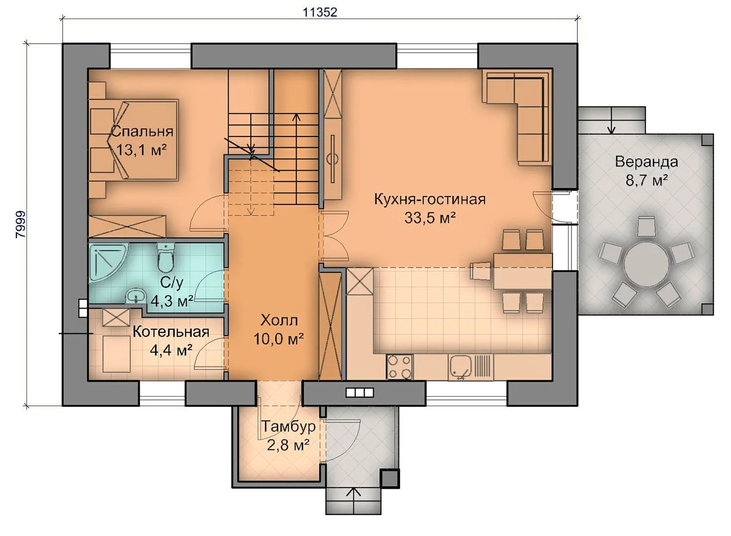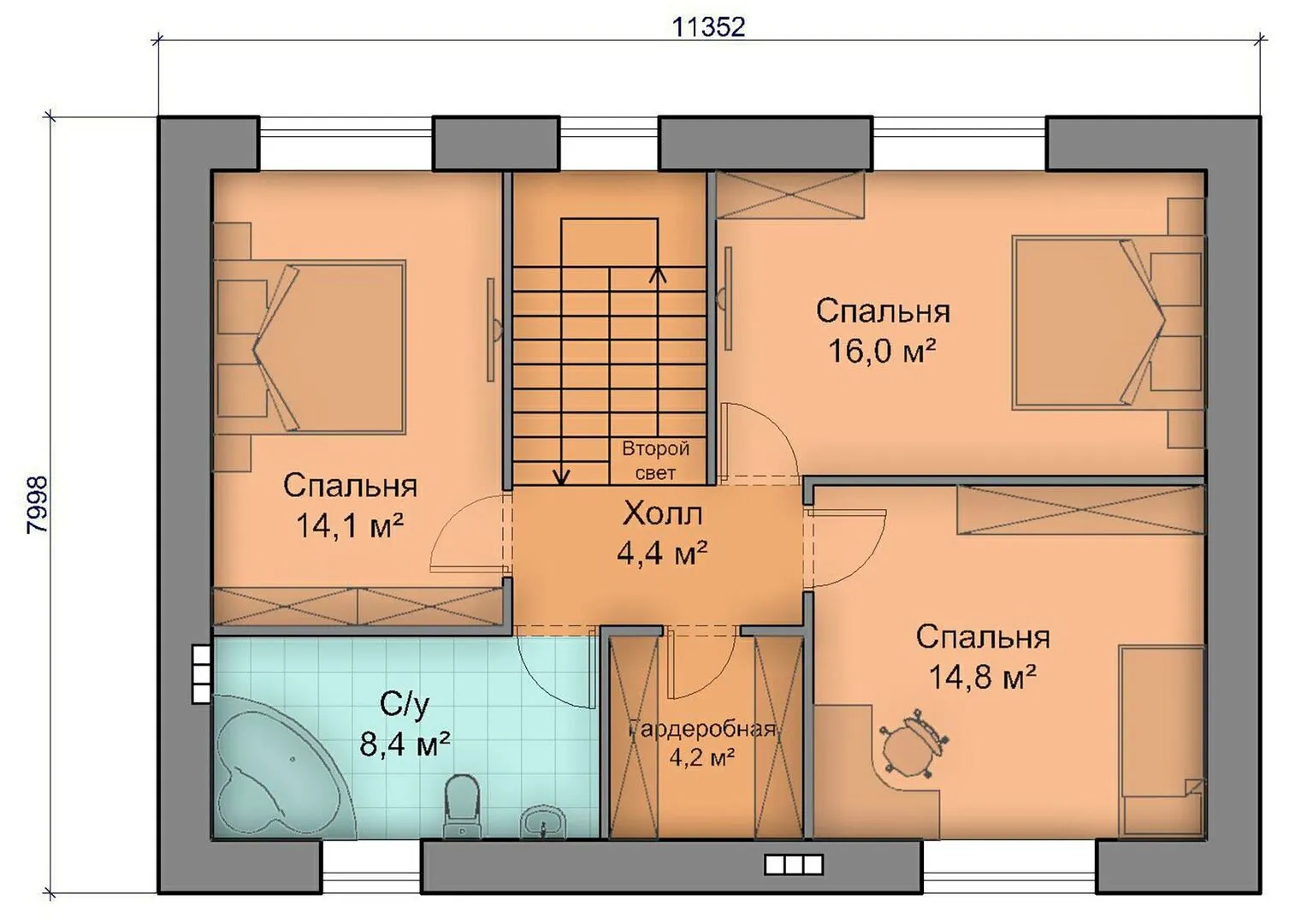 Проект двухэтажного дома №24 (11,3х8,0 м)