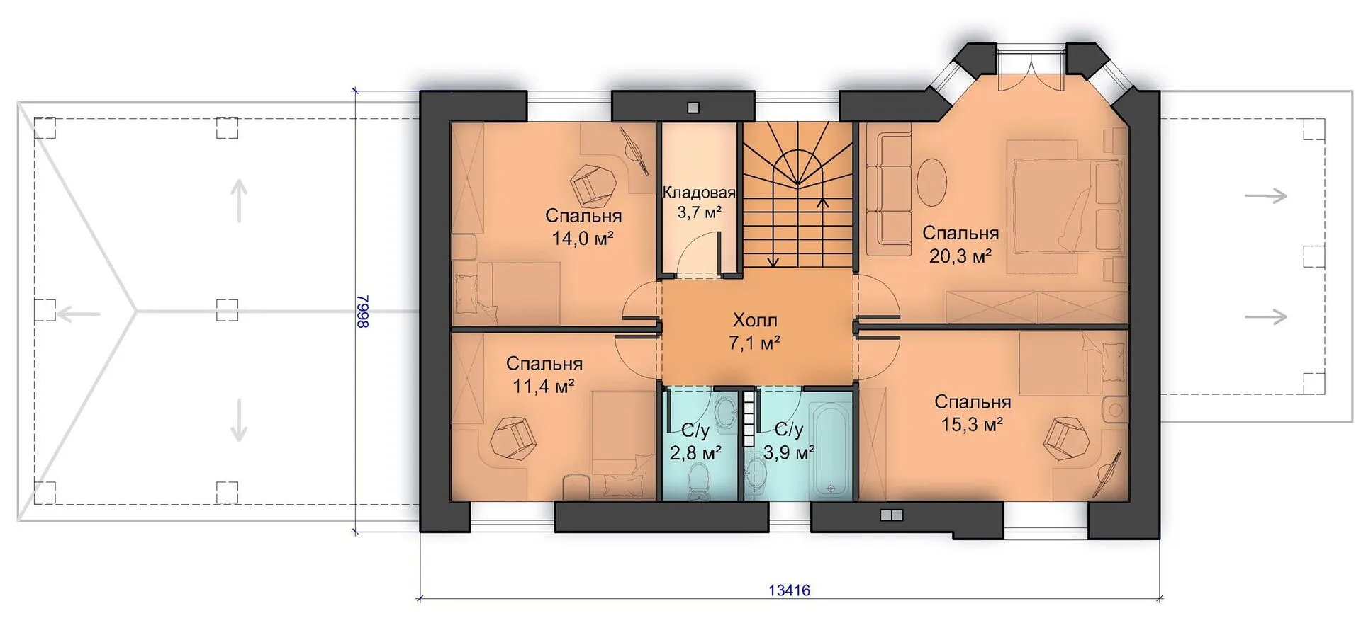 Заказать конусльтацию по:Проект двухэтажного дома №8