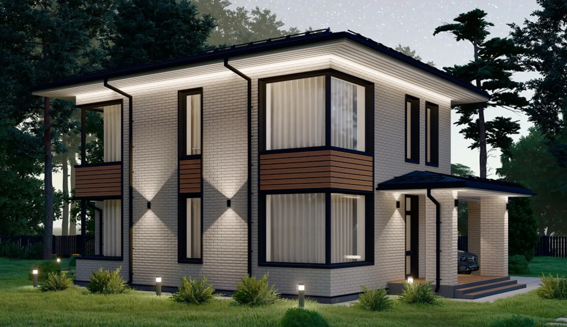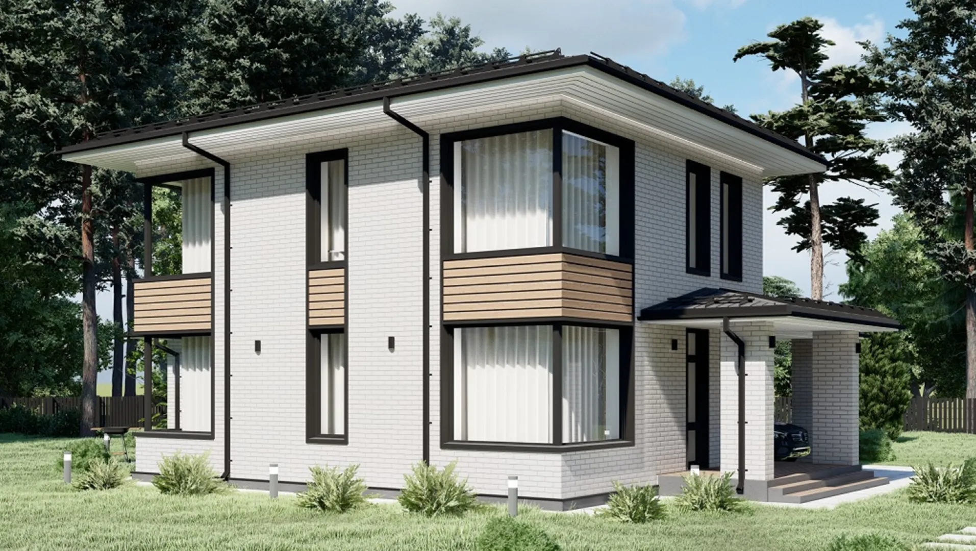 Проект эффективного двухэтажного дома с навесом для авто S-121