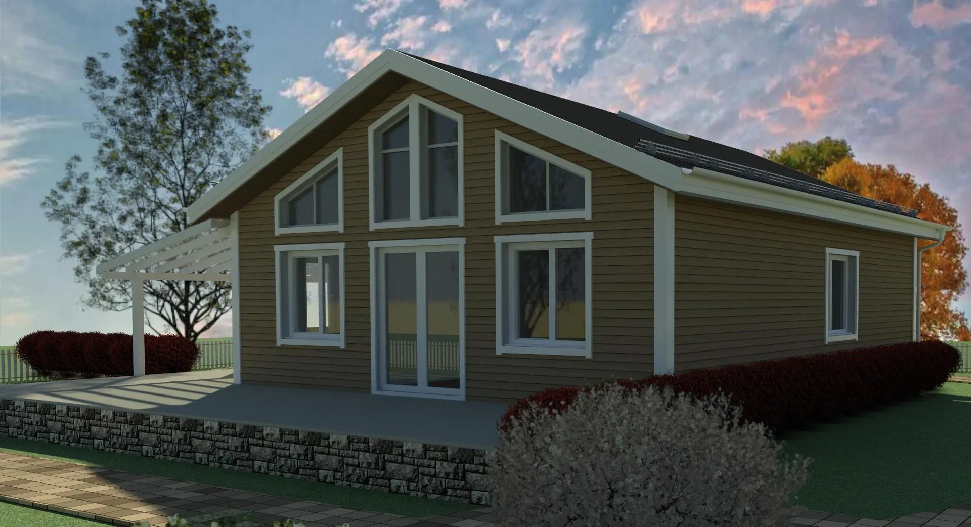 Проект каркасного дома с большой террасой
