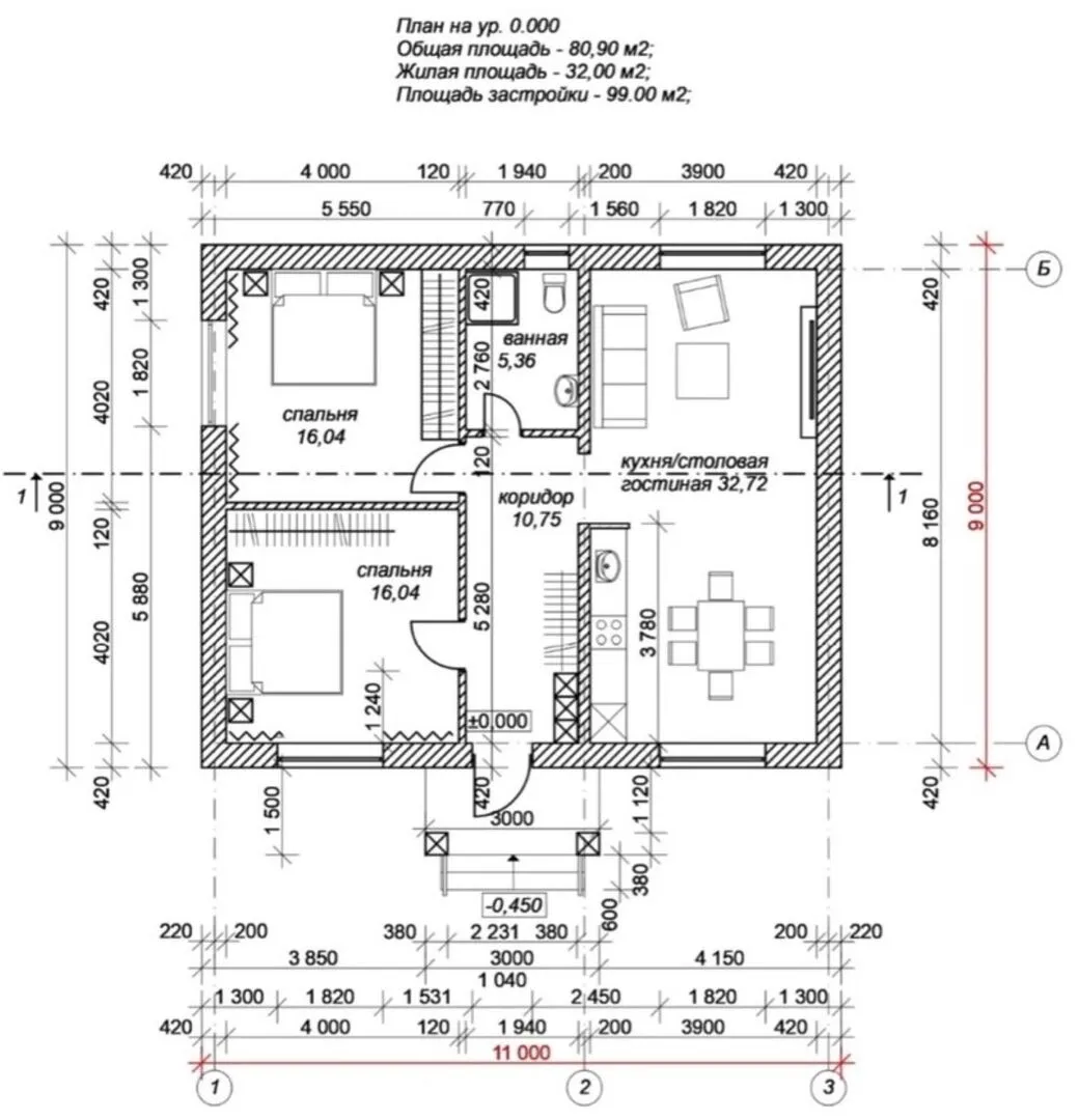 Площадь дома 80 м2