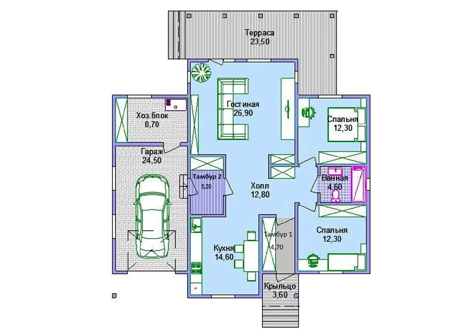 Заказать конусльтацию по:Проект одноэтажного дома из SIP панелей «Регул»