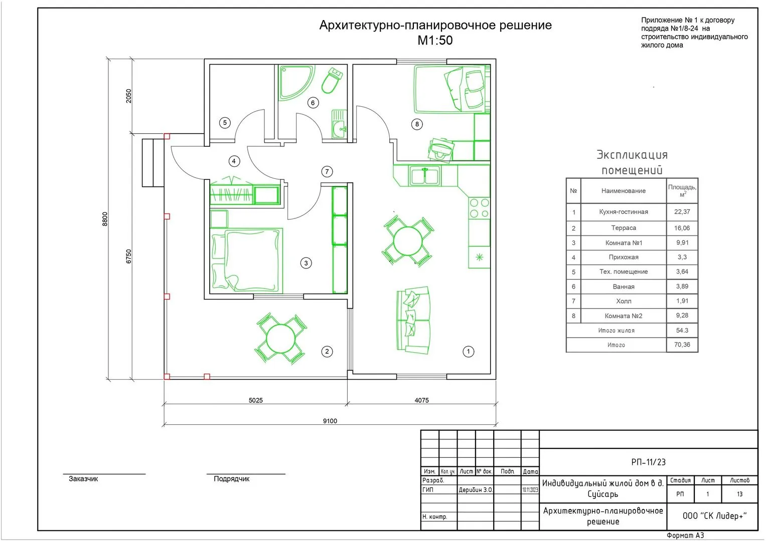 Заказать конусльтацию по:Проект одноэтажного жилого дома в д. Суйсарь «РП-11/23»