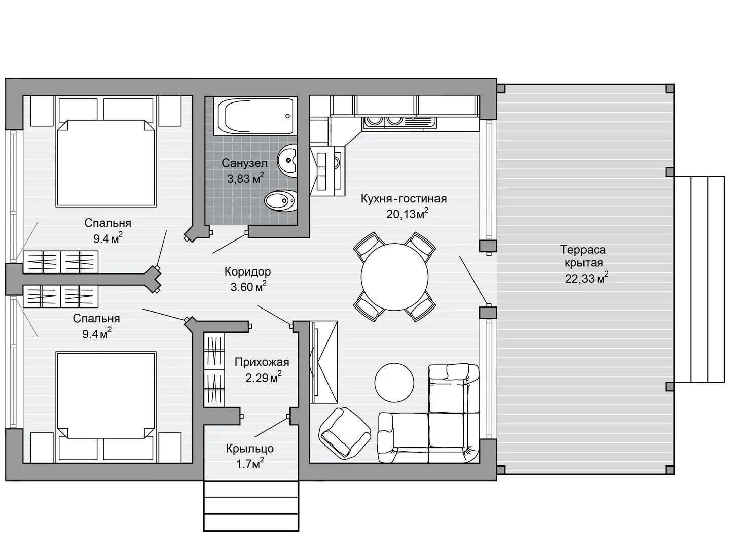 Строительство деревянных каркасных домовСтроительство домовСтроительство домов без балкона или лоджииСтроительство домов без верандыСтроительство домов без гаражаСтроительство домов без чердакаСтроительство домов в стиле БарнхаусСтроительство домов для круглогодичного проживанияСтроительство домов с верандойСтроительство домов с двускатной крышейСтроительство домов с террасойСтроительство одноэтажных домов