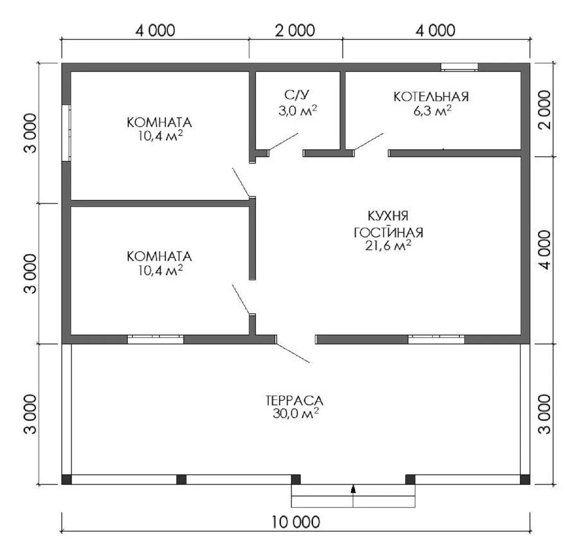 Проект Одноэтажный дом 6х10 с террасой 3х10