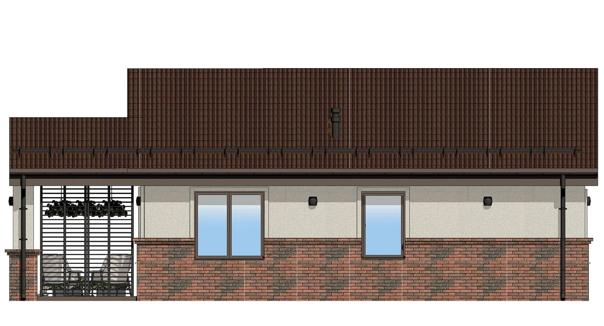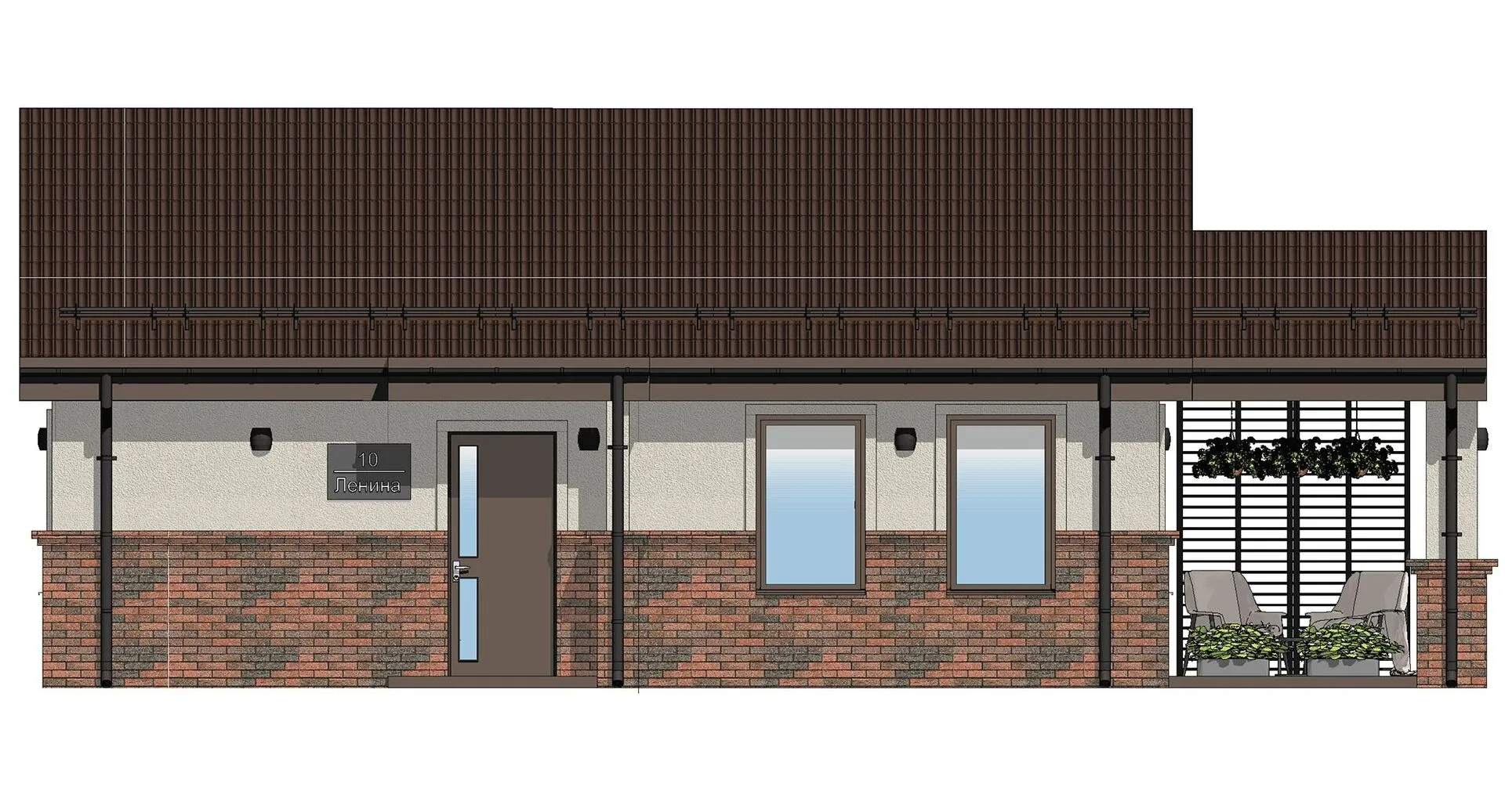 Заказать конусльтацию по:Проект Одноэтажный Дом с террасой Просто 120