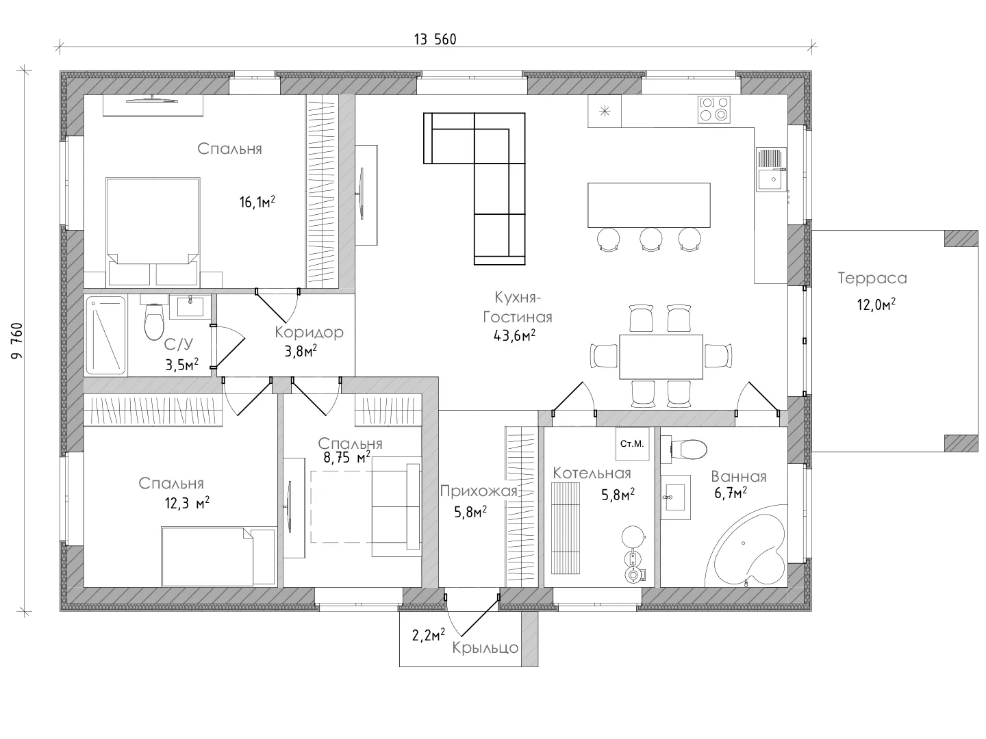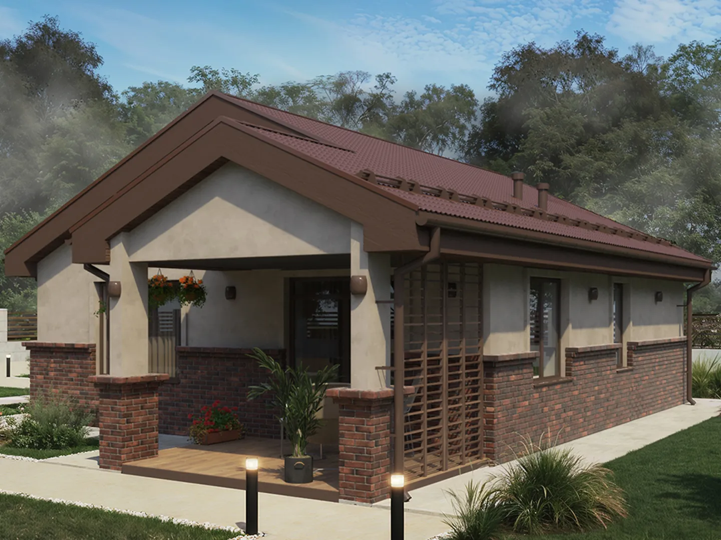 Проект Одноэтажный Дом с террасой Просто 120