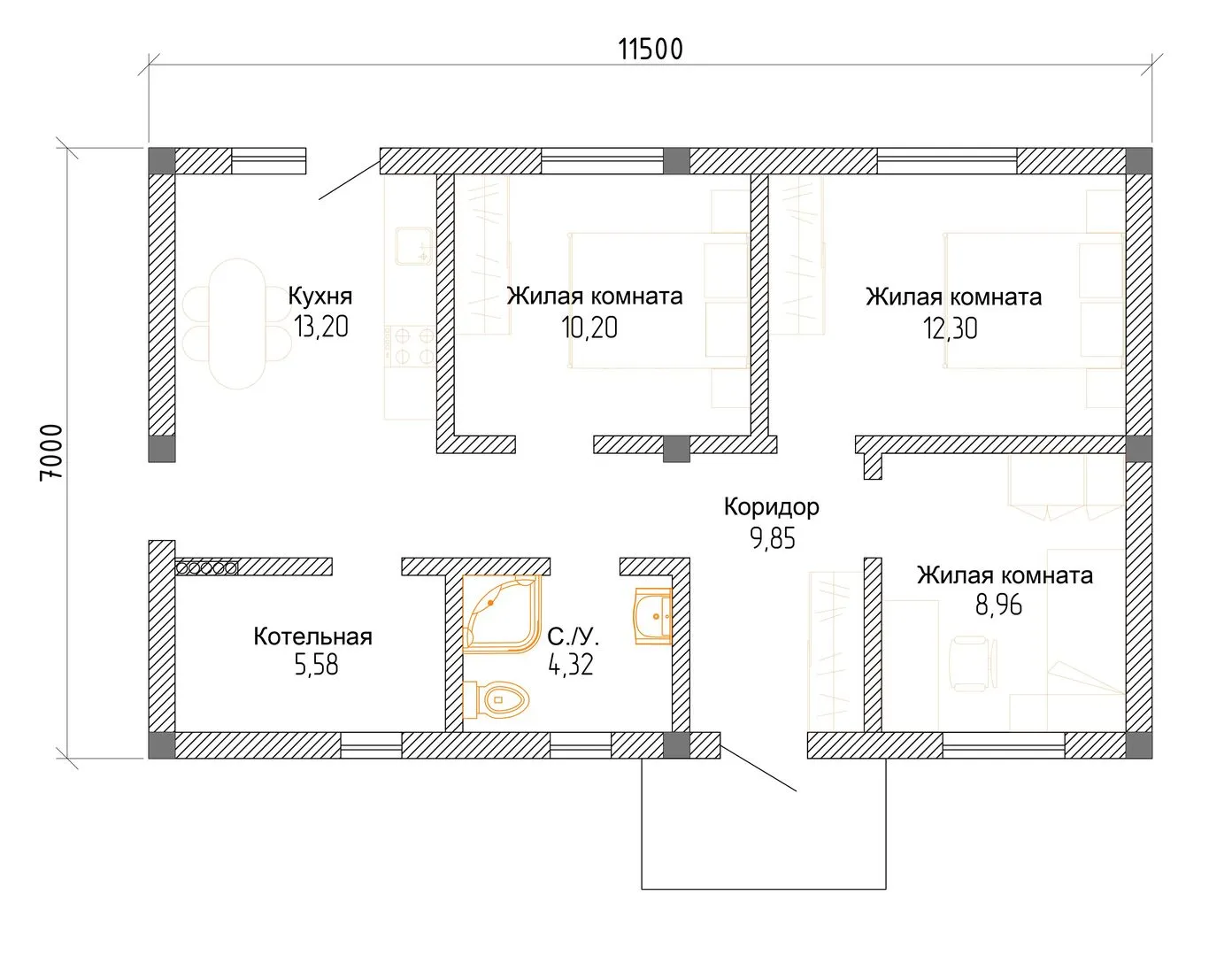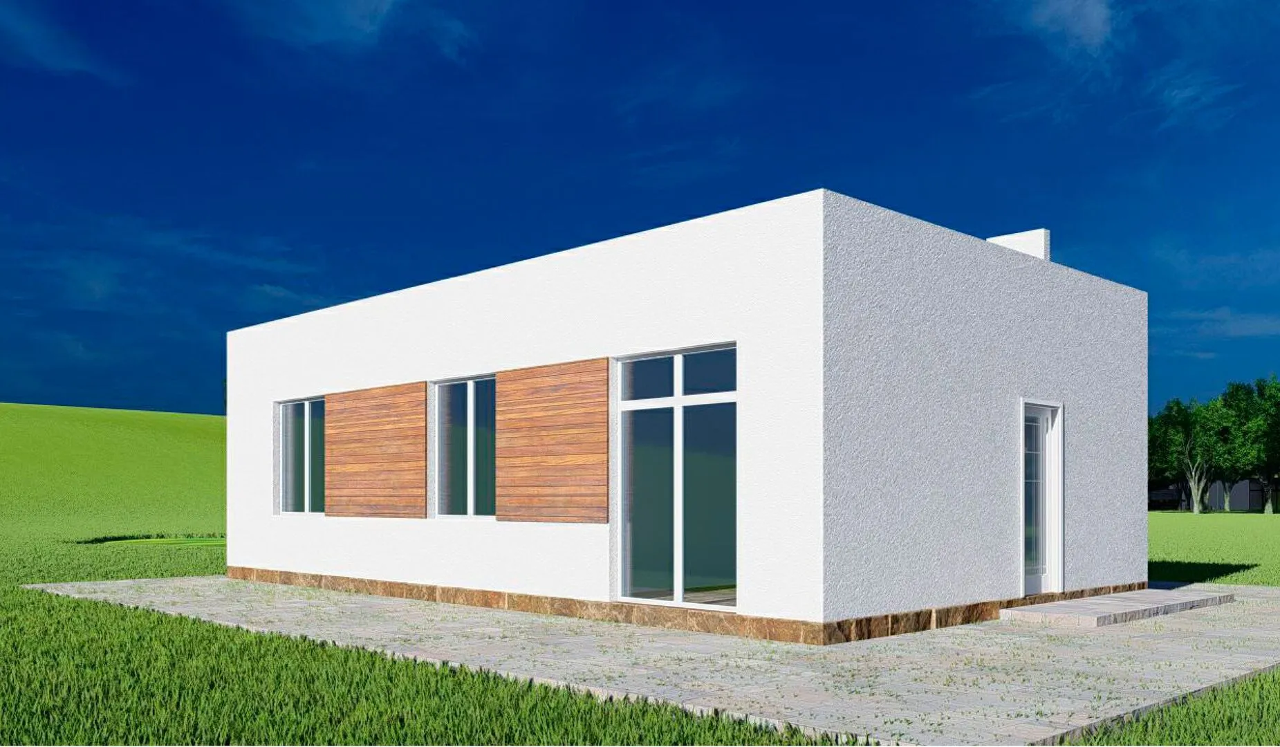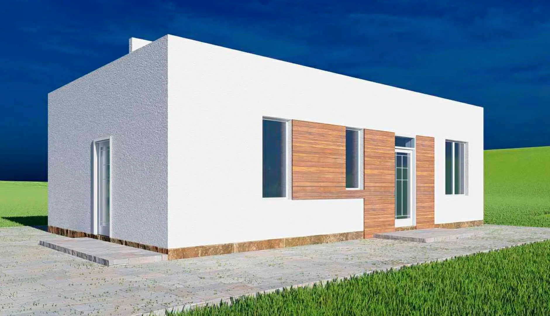 **СЕВЕРНЫЙ** – ваш личный уголок уюта и гармонии в самом сердце современного комфорта. В одноуровневой структуре гармонично сочетаются строгие европейские линии и тепло, которое дарит качественная газобетонная кладка. Ковровый дренаж, надёжная односкатная крыша и продуманные теплоизоляционные решения создают идеальные условия для круглогодичного проживания: зима будет приятной и без лишних хлопот, а летнее тепло оставит лишь приятный запах свежего воздуха и солнечных лучей, проникающих сквозь широкие окна. Дом построен как современная крошечная крепость, где каждый метр проработан для вашего удобства. Он рассчитан на небольшую семью или молодую пару, желающую жить в месте, где каждый элемент – от стен до финишной отделки – воплощает в себе не только эстетическую гармонию, но и практичность. Бесплодные балконы и веранда остаются в прошлом, а открытая планировка без преград помогает почувствовать простор и свободу. Это идеальный выбор для тех, кто ценит спокойствие, качество и безмятежность, не отказывающихся от европейского стиля, но при этом желающий жить в теплом, энергосберегающем доме.