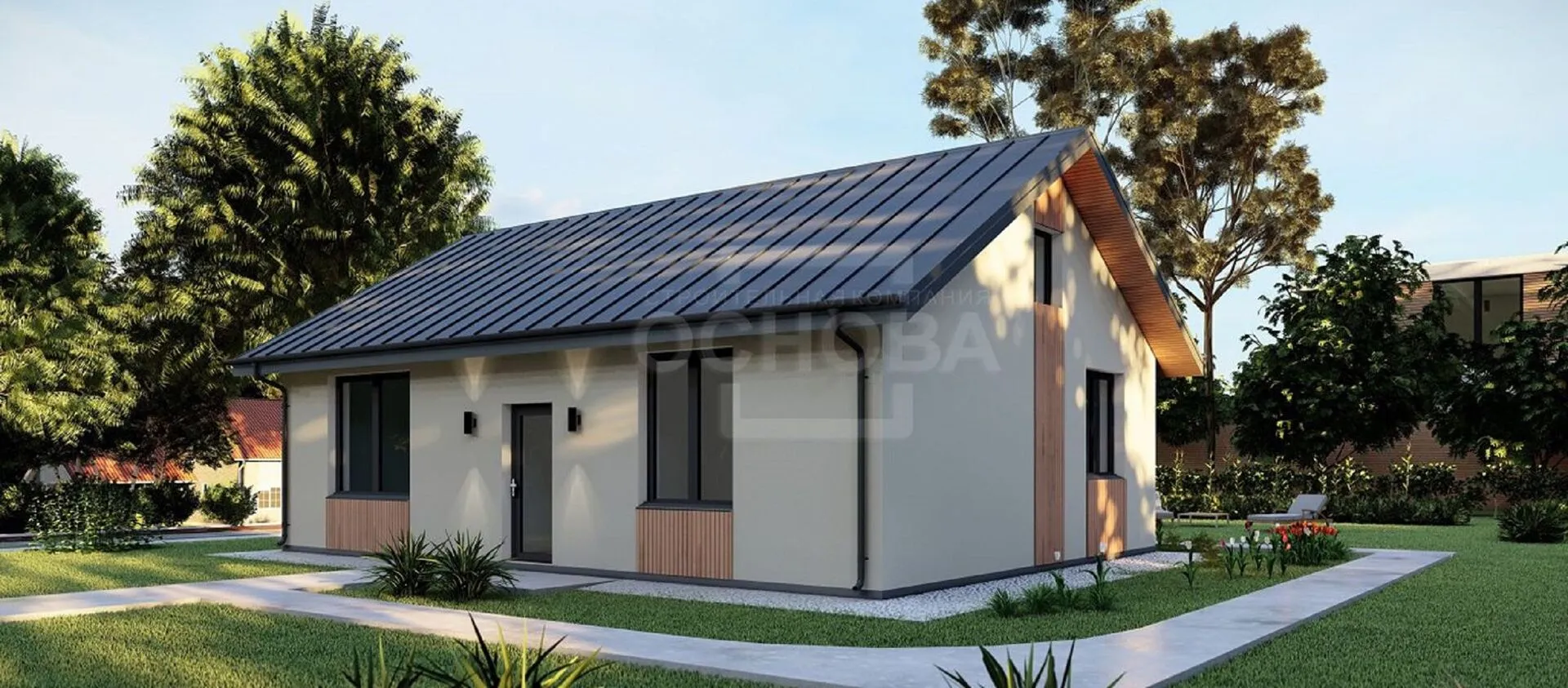 Наша новинка – дом **Солен** воплощает в себе идеалы современного минимализма, сочетая простоту линий с функциональной продуманностью. Это уютный одноэтажный уголок, куда удобно войти даже детям с маленькой коляской, а старшим – без лишних лестниц и барьеров. Внутреннее пространство разделено на крупные светлые зони, где открытость и порядок создают ощущение свободы, а стены из газобетонных блоков гарантируют теплооптимальность и надежную звукоизоляцию. Двускатная крышка, оформленная в строгих черных линиях, подчеркивает современный характер дома, а лёгкая конструкция обеспечивает долгий срок службы. **Солен** предназначен для круглогодичного проживания, поэтому все детали проработаны так, чтобы никакие экстремальные погодные условия не влияли на комфорт. Открытая планировка и крупные окна наполняют комнаты естественным светом. А удобное чердачное помещение становится местом для личных сокровищ, хобби или дополнительной спальни – всё, что нужно, у вас под рукой. Без лишних балконов или веранд, дом остаётся лаконичным и лаконичным, а чистые линии внешнего фасада делают акцент на его современном стиле. Если вы ищете компактный, но стильный дом, где каждый элемент служит не только красивому внешнему виду, но и практическому уюту – **Солен** – ваш идеальный выбор.