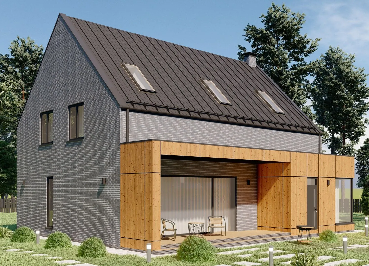 Добро пожаловать в наш новый проект – современный двухэтажный дом в стиле барнхаус, созданный для тех, кто ценит уют и функциональность без лишних украшений. Уже с первого взгляда вы почувствуете атмосферу тихой сельской идиллии, смягчённой современными материалами и продуманной планировкой. Этот дом – идеальное решение для креативных хозяев, которые хотят жить круглый год в защищённом, тепло- и энергосберегающем пространстве, где каждое пространство наполнено светом и теплом. Внутри у нас сочетается открытость и приватность: на первом месте – большая веранда и светло-распространённая кухня, создающая ощущение единства с природой и возможность легко погружаться в домашний мир. Просторные помещения второго этажа, где расположены спальни и уютные уголки для отдыха, оформлены в лаконичном барнхаус-стиле. Вместо балконов – практичные лоджии, а чердачное помещение предоставляет гибкую возможность для творчества или дополнительной жилой зоны. Теплый газобетонный фасад и традиционная двускатная крыша не только обрамляют дом в характерном стиле, но и обеспечивают надёжную теплоизоляцию и долгую службу. Отличительной особенностью проекта является его универсальность: отсутствие прикреплённого гаража не лишает дома выгоды – внешняя автостоянка легко интегрируется в план участка. Такой подход делает наш дом не только красивым, но и практичным, позволяющим вам наслаждаться жизнью в комфортной и современной обстановке, где каждый сантиметр продуман на пользу вам и вашей семьи.