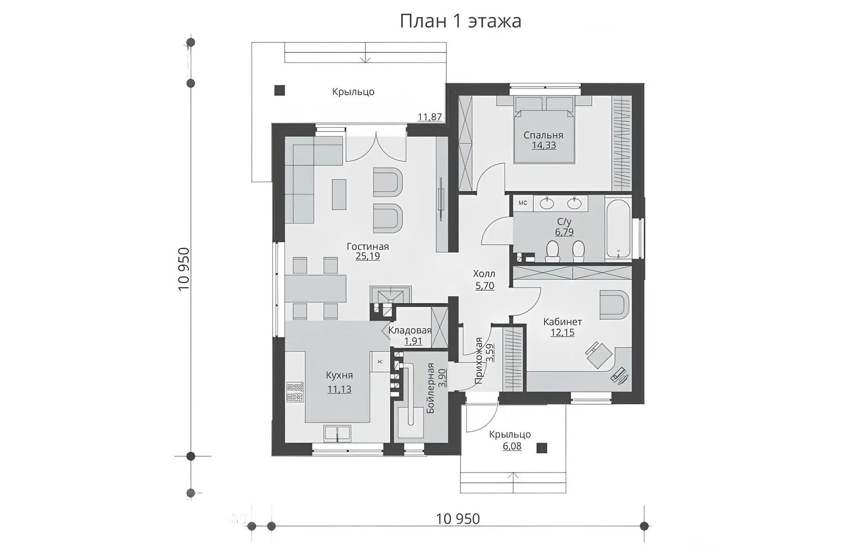 Заказать конусльтацию по:Проект уютного одноэтажного дома