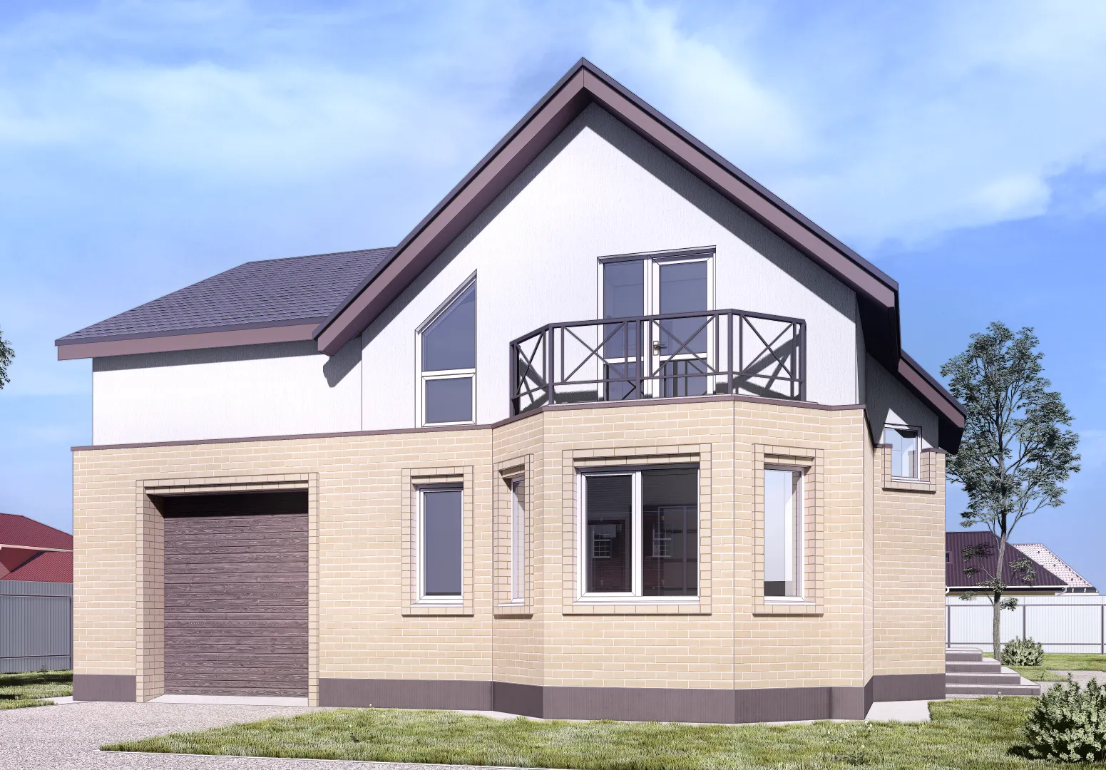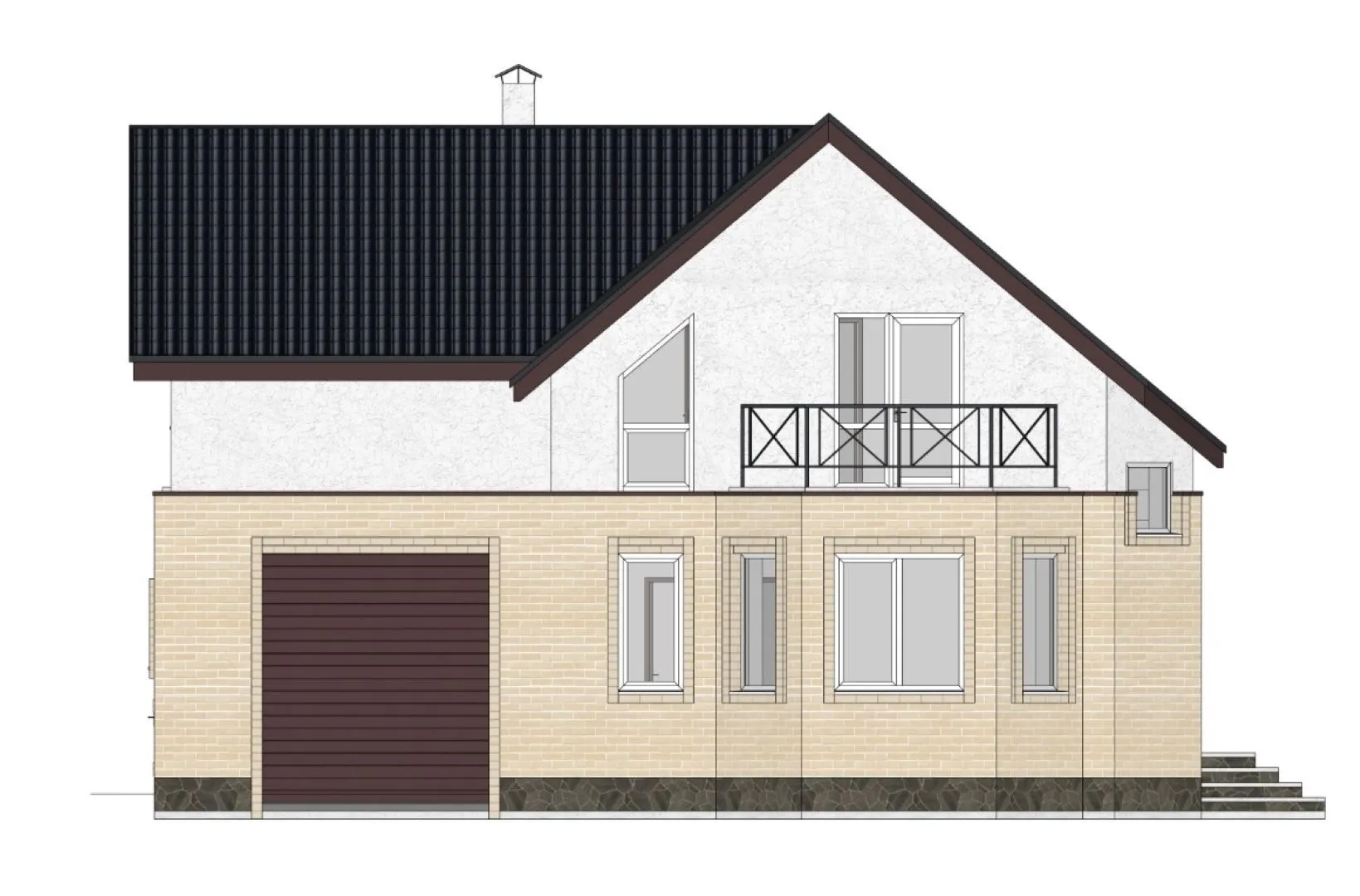 **Добро пожаловать в уютный уголок современной классики – дом NHD‑137.** Это загородный шедевр, выполненный в строгом классическом стиле, где каждая деталь продиктована стремлением создать гармоничное пространство для жизни круглый год. Два надземных этажа открывают просторные, светлые интерьеры, а изысканные окна пропускают мягкий дневной свет, наполняя комнаты теплом и спокойствием. Классический фасад, облицованный газобетонными блоками, сочетает в себе изящество и практичность, гарантируя долговечность и теплоизоляцию. **Комфорт и удобство в каждом уголке.** На первом этаже расположены открытые площадки: три уютных балкона и просторная терраса, где можно насладиться прохладным вечерним воздухом или устроить семейный барбекю. Чердачное помещение превращает здание в многофункциональное пространство, а прицепленный гараж и крытая автостоянка избавляют от хлопот на дорогих дорогах. Двускатная крыша, выполненная в традиционной технике, не только защищает от непогоды, но и добавляет дому характерный силуэт. Этот дом – идеальный выбор для тех, кто ценит сочетание классики, практичности и уюта. Здесь, окруженный зеленью и спокойствием загородной природы, каждый день превращается в настоящее удовольствие. Порой именно так, в простом, но продуманном доме, находится настоящий дом.