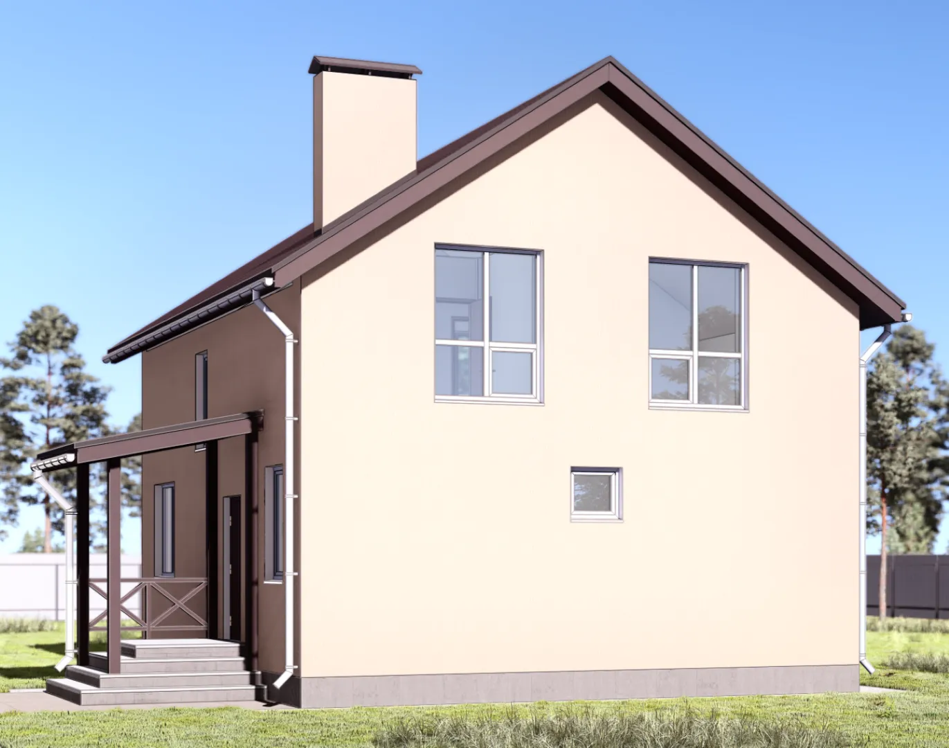 Над городским шумом и суетой, в тишине живописного загородного района, встречается дом проекта NHD‑176 — пример удачного сочетания классической элегантности и практичности современного быта. Двухэтажная застройка в строгом классическом стиле открывает просторные внутренние помещения, а обширная терраса привлекает своей уютной обстановкой и великолепным видом на окрестности. В доме предусмотрена возможность круглогодичного проживания: изысканные материалы отделки и продуманная планировка позволяют с комфортом переживать любые климатические условия без потери тепла и уюта. Особенностью проекта является уникальная система чердачного помещения, создающего дополнительный жилой или складской уголок. Газобетонные блоки, применённые при возведении внешних стен, гарантируют теплоизоляцию и долговечность конструкции, а двухскатная крыша подчёркивает красоту «живого» здания, позволяя в любое время года наслаждаться светом и свежим воздухом. Несмотря на отсутствие приобщенных гаражей и веранд, дом остаётся идеальным выбором для тех, кто ценит гармонию природы и классическую архитектуру, и желает создать уютную, спокойную среду, где каждый день приносит радость и ощущение дома.