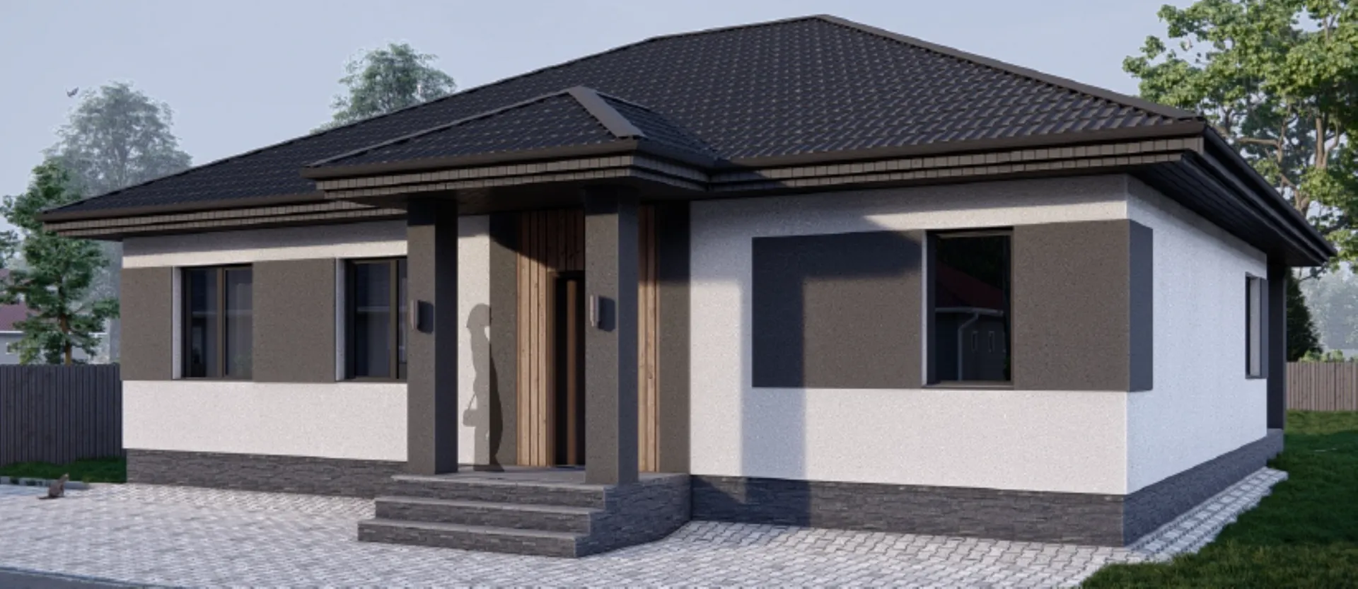 Наслаждайтесь просторным и уютным жильём, где каждая деталь продумана с любовью к комфорту. Дом площадью 122 м², выполненный по европейскому стилю, открывает вам мир светлых, воздушных комнат и приятной атмосферы, в которой вы сможете отдохнуть и чувствовать себя дома, независимо от сезона. Великолепный четырёхскатный (вальмовой) кровельный профиль придаёт фасаду выразительность, а износостойкие газобетонные блоки обеспечивают тепло и звукоизоляцию, создавая идеальные условия для круглогодичного проживания. Особое внимание уделено удобству жизни: у вас есть просторная терраса, где можно устроить уютный уголок для отдыха под открытым небом, насладиться ароматом садовых цветов или провести вечер в компании друзей. Внутреннее пространство без лишних перегородок дарит ощущение свободы и простора, а продуманная планировка делает каждый уголок функциональным и приятным. Этот дом – сочетание практичности и эстетики: нет лишних балконов и веранд, но есть всё необходимое для комфортного проживания: ровный и светлый подъём с единственным надземным этажом, удобная в «первом» планировке, идеальный для семей с детьми или влюблённой пары, которые ценят уют и комфорт. Выбирая этот вариант, вы получаете дом, где каждая минута проведённой в нём будет радовать глазами, сердцем и душой.