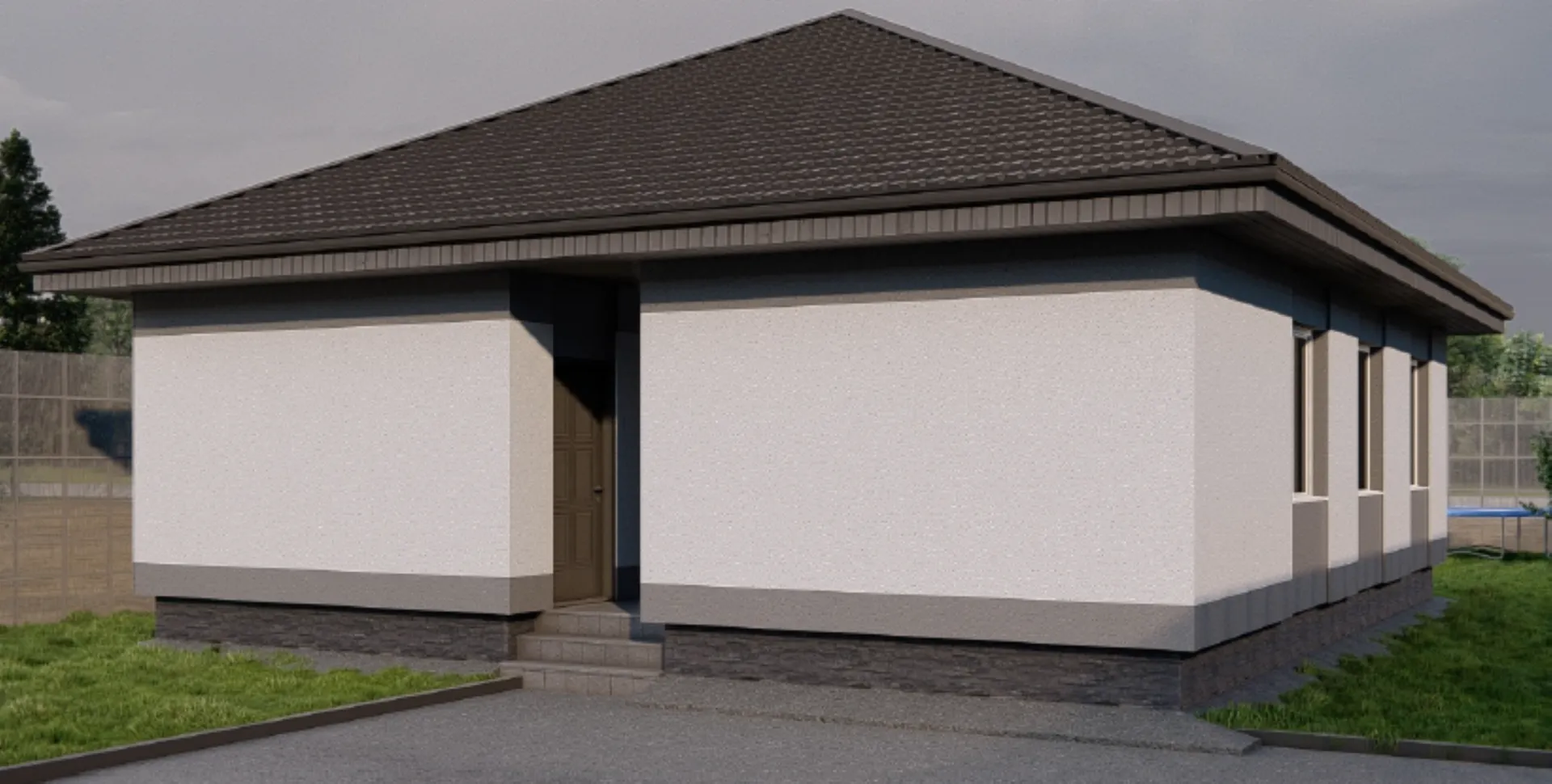 Приглашаем вас окунуться в мир классической гармонии и уюта в доме площадью 99 м², который рассчитан на круглогодичное проживание. Здесь каждая полка, каждый уголок будто обретает свое место в идеальной симфонии простоты и функциональности: открытые, светлые интерьеры, выполненные в строгом светлом стиле, создают атмосферу спокойствия и вдохновения. Дом одноповерхен, но тем не менее его внутреннее пространство наполнено воздушностью и легкостью благодаря использованию керамзитобетонных блоков, которые способствуют хорошей теплоизоляции и акустике. Четырёхскатная (вальмовая) крыша, выполненная из качественных материалов, гармонично завершает облик дома, придавая ему элегантный профиль. Несмотря на отсутствие балконов, веранд и пристроенного гаража, каждая деталь продумана: просторная гостиная с большим окном, светлые спальни, уютный кабинет — всё для семейной жизни без компромиссов. Это место, где вам всегда будет тепло, ведь дома здесь можно наслаждаться комфортом в любое время года, а классический вкус архитектуры добавляет образу неподвластные времена.