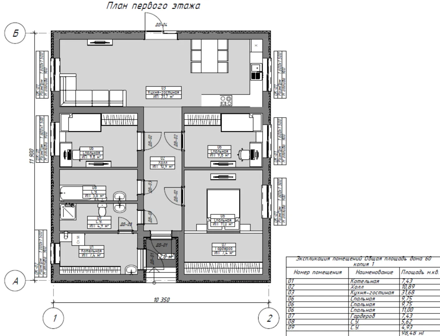 Площадь дома 98 м2