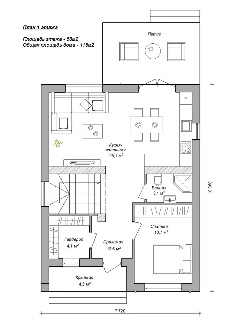 Площадь дома 115 м2