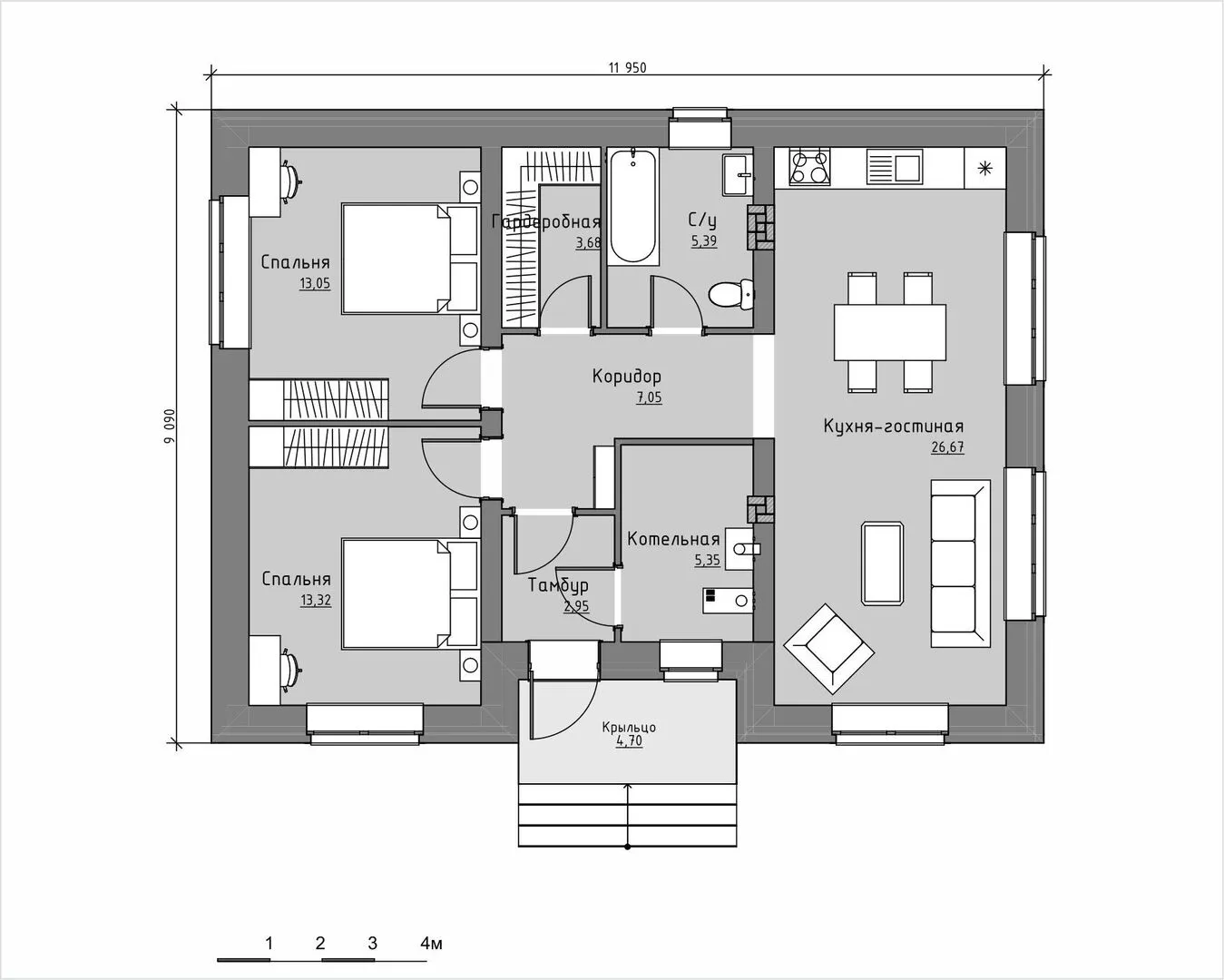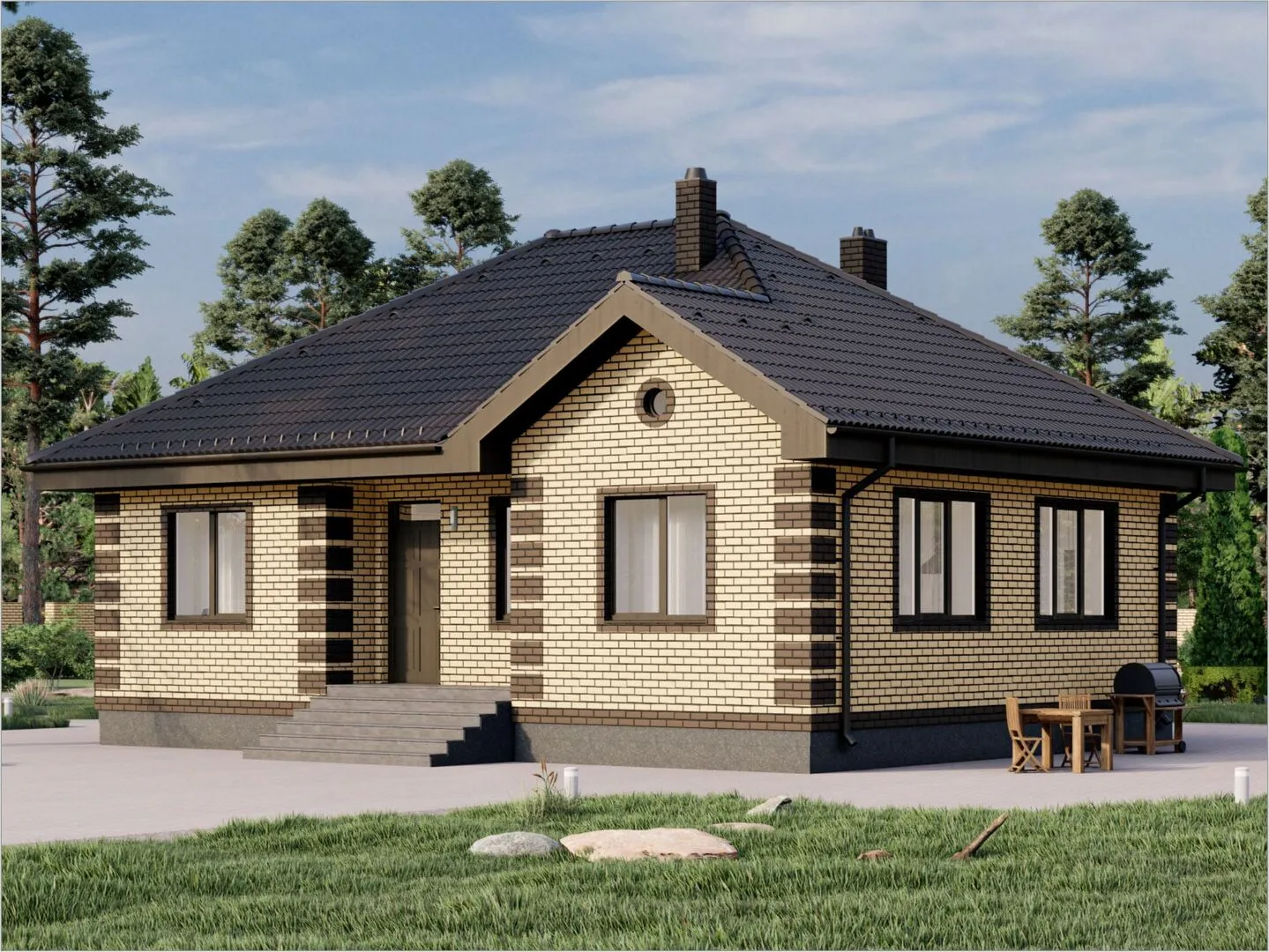 **Дом «Рябина» – уют и стабильность в классическом обрамлении** Погрузитесь в атмосферу настоящего уюта, когда каждая деталь вашего будущего дома «Рябина» продумана с любовью к классике. На просторных 77 м² вы найдёте единственный надземный этаж, который придаёт интерьеру простоту и лёгкость, а в сочетании с классическим стилем напоминает уютные дома прошлых эпох, но в современных стандартах. Круглогодичное проживание гарантировано – тепло, свет, и защита от непогоды гарантированы благодаря качественной комбинированной крыше и газобетонным блокам, которые обеспечивают отличный тепло- и звукоизоляцию. Эстетика и практичность объединились в «Рябине». Прямозвучивший классический фасад, выполненный из ровных газобетонных блоков, создаёт ощущение надёжности и благородства. На этот уровень добавляет спокойный, уютный воздух, который легко вписывается в любопытный городской пейзаж, а не запутанные внутренние коммуникации – только простые, но удобные помещения, которые быстро поглощаются теплом. Хотите просторное ощущение внутри, но не жаждете лишних деталей? Здесь нет балконов, лоджий, веранд, чердачных помещений, гаража и террасы – лишь открытость и свобода, которые вы сами придумаете в своей жизни. Если вы ищете идеальное сочетание традиционного стиля с высокими стандартами комфорта, где каждая деталь продумана так, чтобы чувствовать себя как дома, дом «Рябина» – ваш идеальный выбор. Он сочетает в себе непринуждённую элегантность, доступную ценность и практичность, чтобы подарить вам дом, где каждая деталь говорит о гармонии и тепле. Звоните и узнайте, как ваша новая история начнётся прямо сейчас!