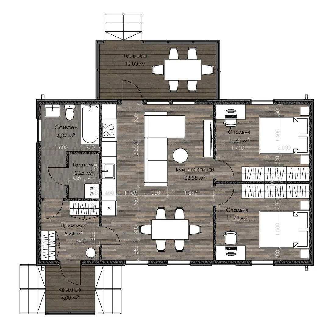 Строительство домовСтроительство домов без балкона или лоджииСтроительство домов без гаражаСтроительство домов без чердакаСтроительство домов в стиле БарнхаусСтроительство домов для круглогодичного проживанияСтроительство домов из CLT-панелейСтроительство домов с верандойСтроительство домов с плоской кровлейСтроительство домов с террасойСтроительство одноэтажных домов