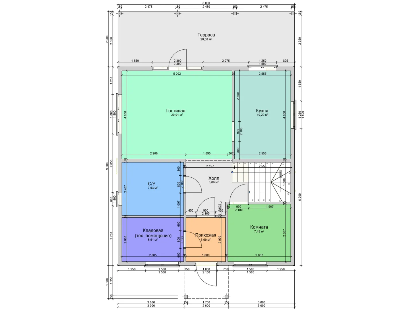 Одноэтажный дом из клееного бруса 3-20-3