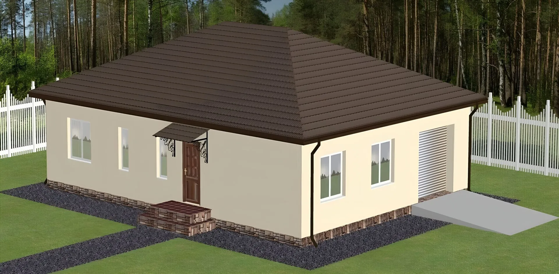 Пройдя мимо, вас встретит открытость и лаконичность в стиле минимализма: простые линии, чистые формы, но при этом каждая деталь пронизана вниманием к комфорту и функциональности. Одноэкурсовый дом с четырьмя скатами, выполненный из высококачественного армированного бетона (арболит), словно приглашает к бесконечному круглогодичному уюту. Большие панорамные окна наполнят интерьер естественным светом, а прочная крыша обеспечит защиту от непогоды, позволяя чувствовать себя дома в любое время года. Внутри вы обнаружите просторный, светлый план с удобными зонами для семьи и гостей. Чердачное помещение, легко преобразовавшееся в стильный кабинет, игровую комнату или хозоводскую, придает дому дополнительную вместительность без потери эстетики. Пристроенный гараж и крытая автостоянка обеспечат безопасное размещение автомобиля, а открытый двор станет идеальным местом для семейных пикников и вечерних бесед. Такой дом – это сочетание практичности, современного дизайна и теплоты семейного уюта, где каждая стена и уголок пропитаны вашим комфортом.