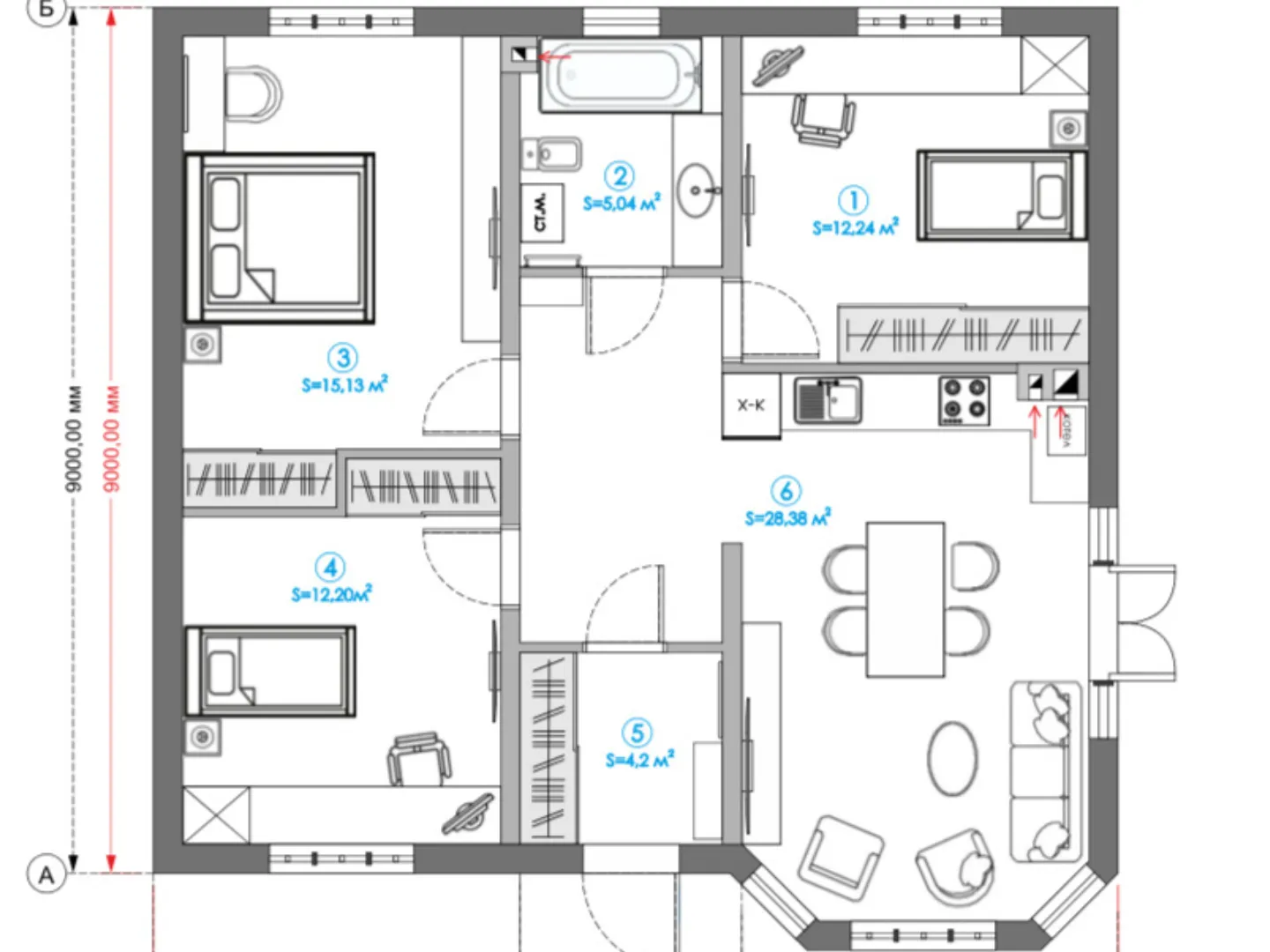 Площадь дома 77 м2
