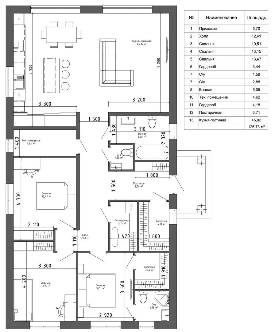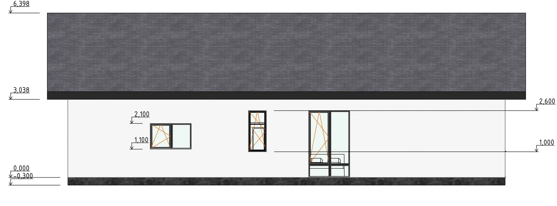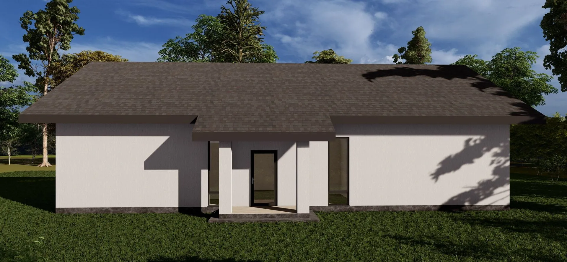 Одноэтажный дом с террасой, 3 спальнями и отделкой штукатуркой