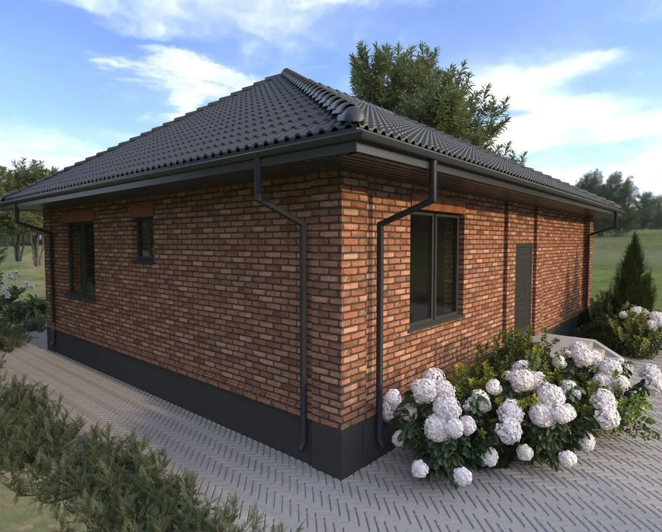**Софья** – это идеальное сочетание классической элегантности и комфорта современной семейной жизни. Одноэтажный дом с кирпичными стенами и вальмовой кровлей создаёт ощущение надёжности и уютности, привнося тепло восточного стиля в повседневный быт. Архитектура «Софьи» выполнена в строгом классическом стиле: гармоничные линии, баланс пропорций и внимание к деталям придают дому неповторимый шарм и статус. Даже простая задняя часть, где размещён уютный двор, способна внушать чувство защищённости и безопасности для гостей и близких. Дом спроектирован с мыслью о круглогодичном проживании: кирпич, как естественный теплоноситель, удерживает тепло в зимние месяцы, а в летний период сохраняет прохладу. Отсутствие балконов и веранд не мешает получить впечатляющую внутреннюю атмосферу: широкие окна позволяют впустить мягкий свет, а открытые пространства внутри создают ощущение простора и свободы. Для удобства владельца предусмотрено место для приватного авто – прицепленный гараж, где ваш автомобиль всегда под надёжным покрытием. **Софья** становится не просто объектом недвижимости, а местом, где каждый уголок наполнен вниманием к деталям, а уют и комфорт становятся постоянными спутниками вашей семьи. Приглашаем окунуться в атмосферу спокойствия и благородства классического дома, который станет идеальным выбором для тех, кто ценит сочетание эстетики и практичности.