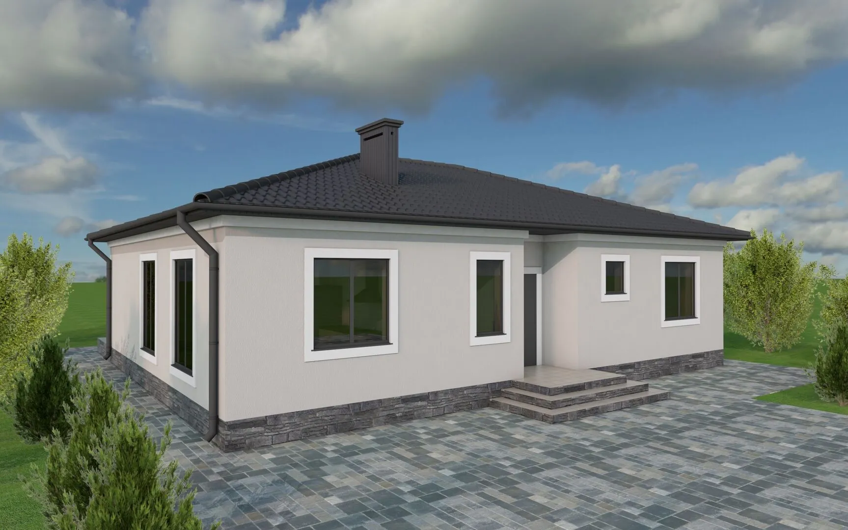 Этот прекрасный одноэтажный дом «Современная классика ПР‑1» словно приглашает вас на отдых от городской суеты. Его строгая классика в сочетании с современными удобствами создает атмосферу уюта и спокойствия, идеальную для круглеторогового проживания. Внутренние пространства обрамлены просторными окнами, наполняя дом светом и открывая тёплый, дружелюбный интерьер, где каждый уголок напоминает о домашнем тепле. Крыша в типичной четырёхскатной, вальмовой форме обрамляет живописный вид на открытый двор и террасу, предлагая вам возможность наслаждаться баллаком у тихих вечеров. Вместо традиционных балконов и веранд, дом дарит просторную заднюю террасу – идеальное место для барбекю, романтических ужинов на свежем воздухе или просто отдыха под звёздами. Вместе с этим, чердачное помещение предоставляет дополнительное хранилище, куда можно разместить сезонные вещи или уютную комнату для творчества. Фасад, выполненный из прочных керамзитобетонных блоков, не только обеспечивает отличную тепло- и звукоизоляцию, но и добавляет внешнему облику элегантность и современный характер. Внутреннее планирование продумано до мелочей: просторные комнаты, большие окна, качественная отделка и удобные коммуникации создают ощущение роскоши без лишних изысков. Этот дом – идеальный выбор для тех, кто ценит гармонию классического стиля и современных удобств, и ищет своё личное убежище от повседневной спешки.