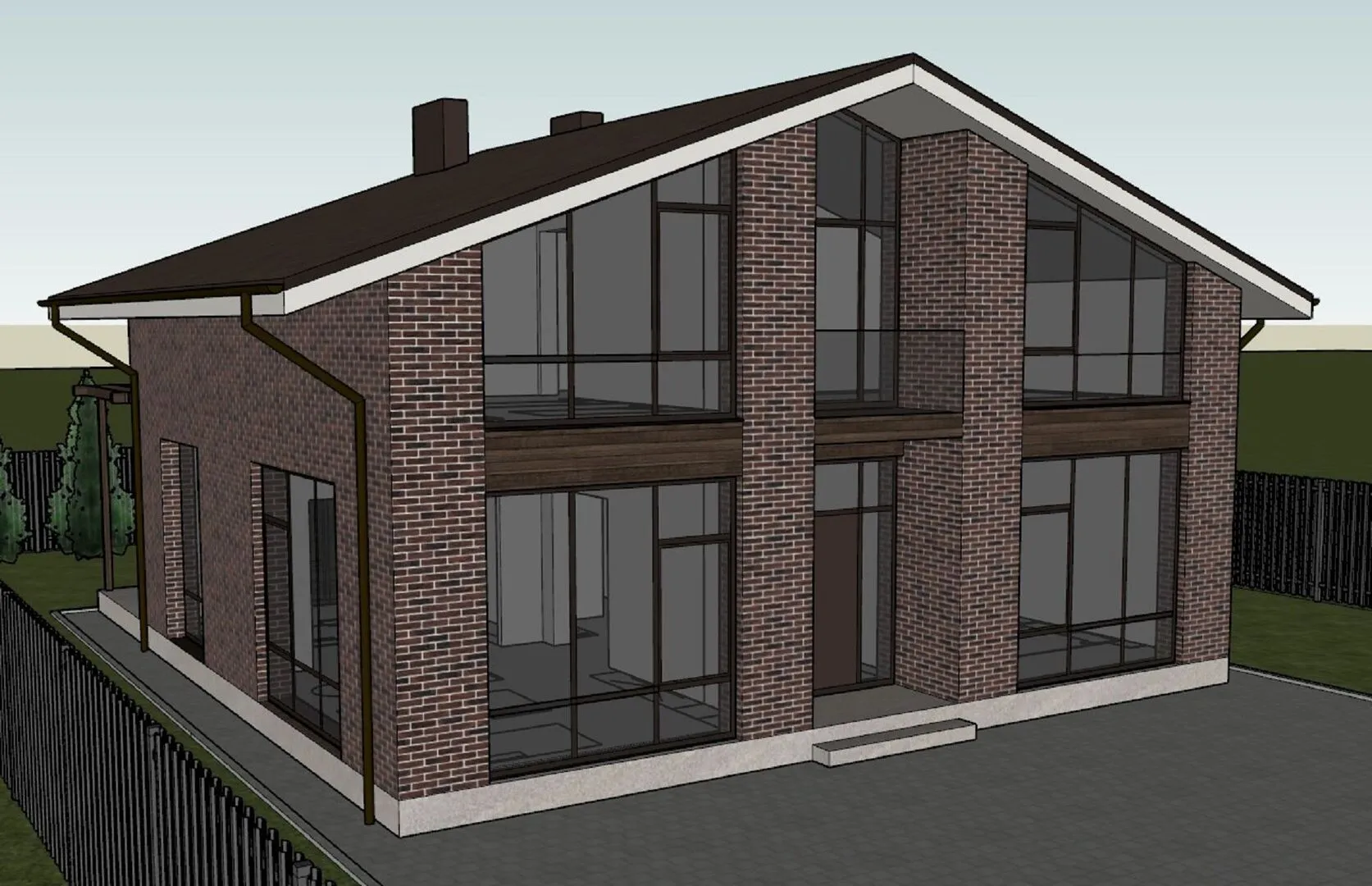 БалковДом двухэтажный с кирпичными фасадами 128,8