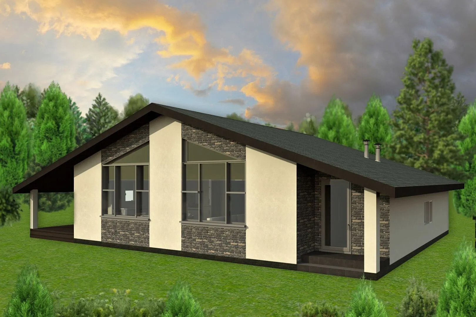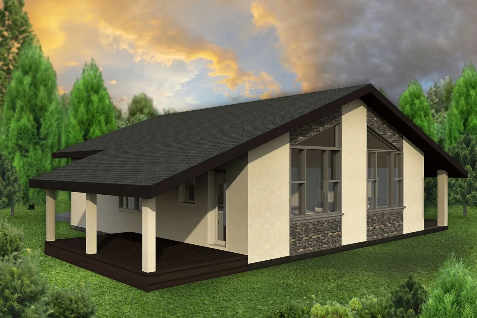 Заказать конусльтацию по:Современное шале из арболита с террасой- Святая гора