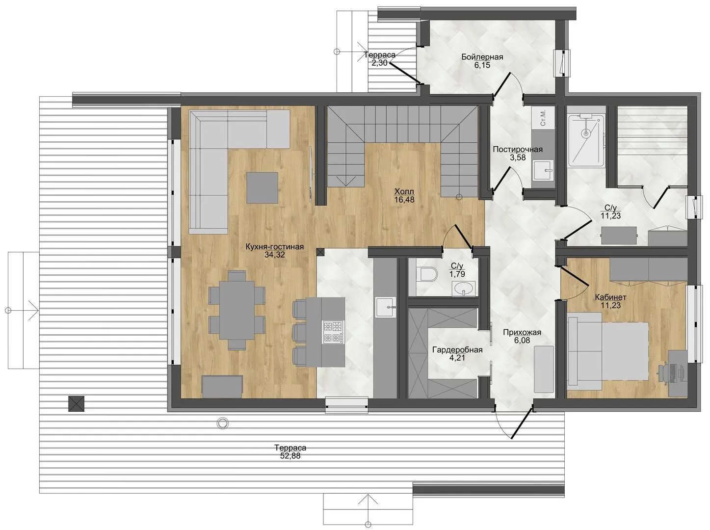 Заказать конусльтацию по:Современный дом в стиле Барнхаус L235