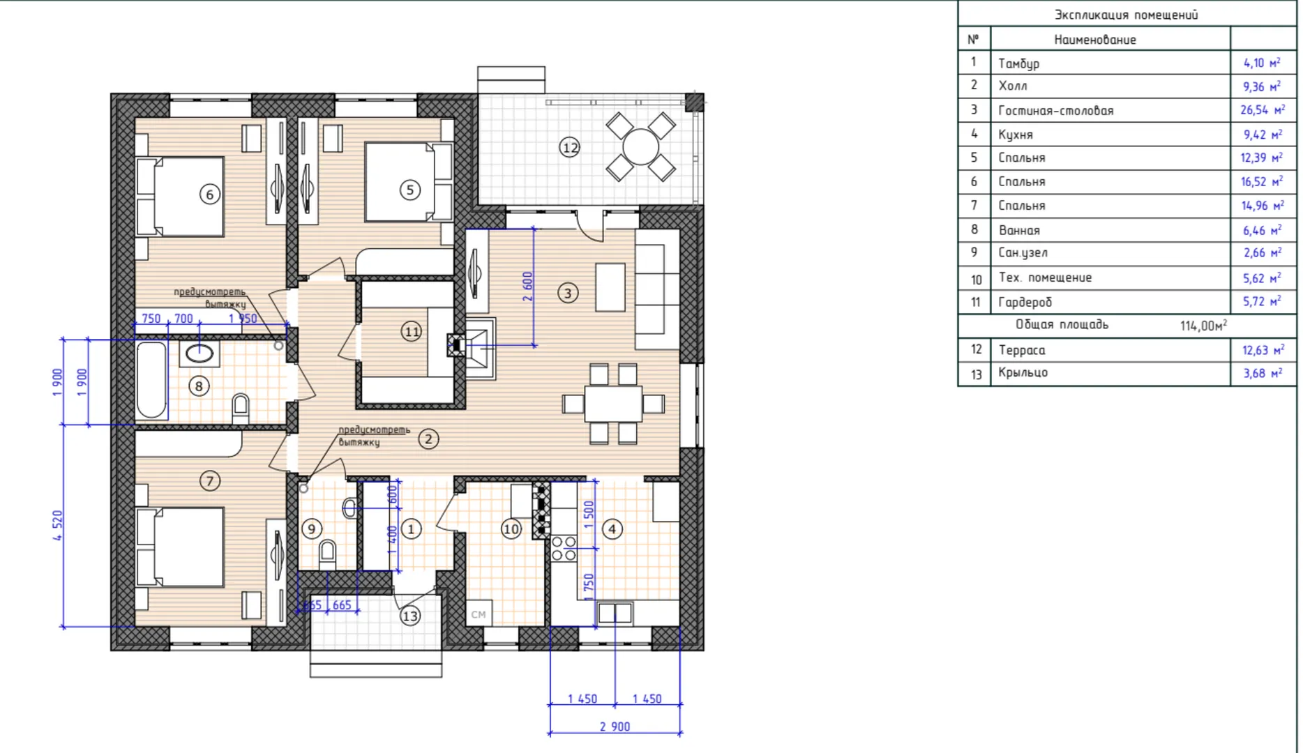 Площадь дома 114 м2