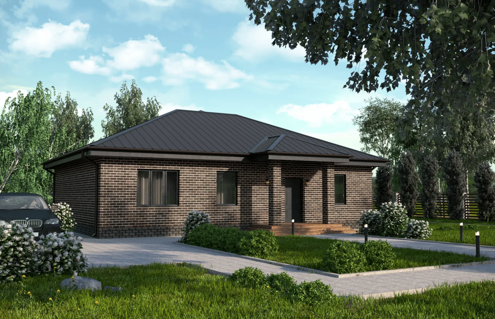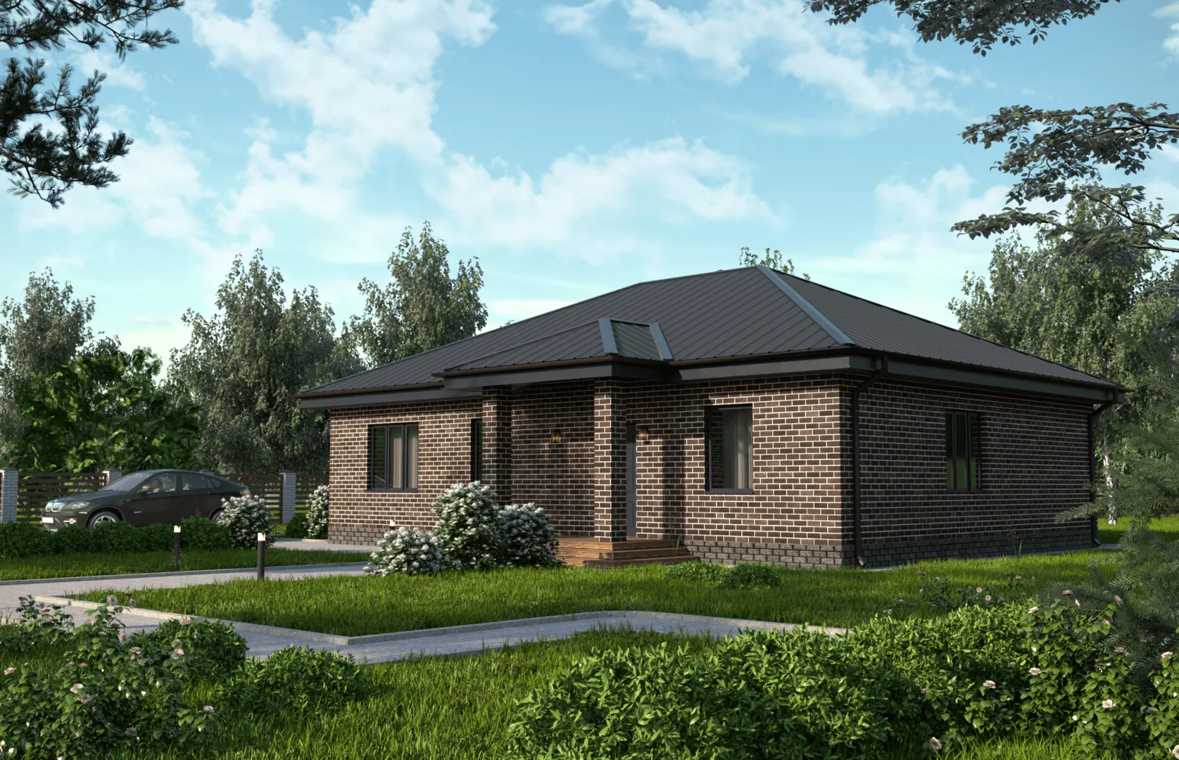 **Дом «Стаут»** — идеальный воплощение европейского уюта, где каждый элемент создан для комфорта и практичности. Одноэтажный фасад из благородного кирпича гармонично сочетается с четырёхскатной, вальмовой крышей, создавая уютную семейную атмосферу, защищённую от непогоды. Это место, где можно спокойно наслаждаться летними вечерними прогулками и зимними уютными вечерами, ведь дом рассчитан на круглогодичный проживание и полностью защищает от холодов и влажности. Внутри вас ждёт просторной интерьер, где каждое пространство продумано до мелочей. Величественная веранда приглашает к тихим беседам под звёздами или тихим чтением за чашечкой ароматного кофе. Уют и функциональность сочетаются: отсутствуют балконы и лоджии, но это не мешает создать ощущение лёгкости и свободы благодаря открытым площадям. Плавно переходя от внутреннего помещения к внешней зоне, вы ощутите лёгкость и непривязку от ограничений современной квартиры. Дом «Стаут» — это ваш новый дом, в котором каждая деталь говорит о спокойствии европейской архитектуры и простоте обслуживания. Приглашаем вас открыть для себя новый стиль жизни, когда кирпичные стены, вальмовая крыша и уютная веранда создают атмосферу, о которой вы всегда мечтали.