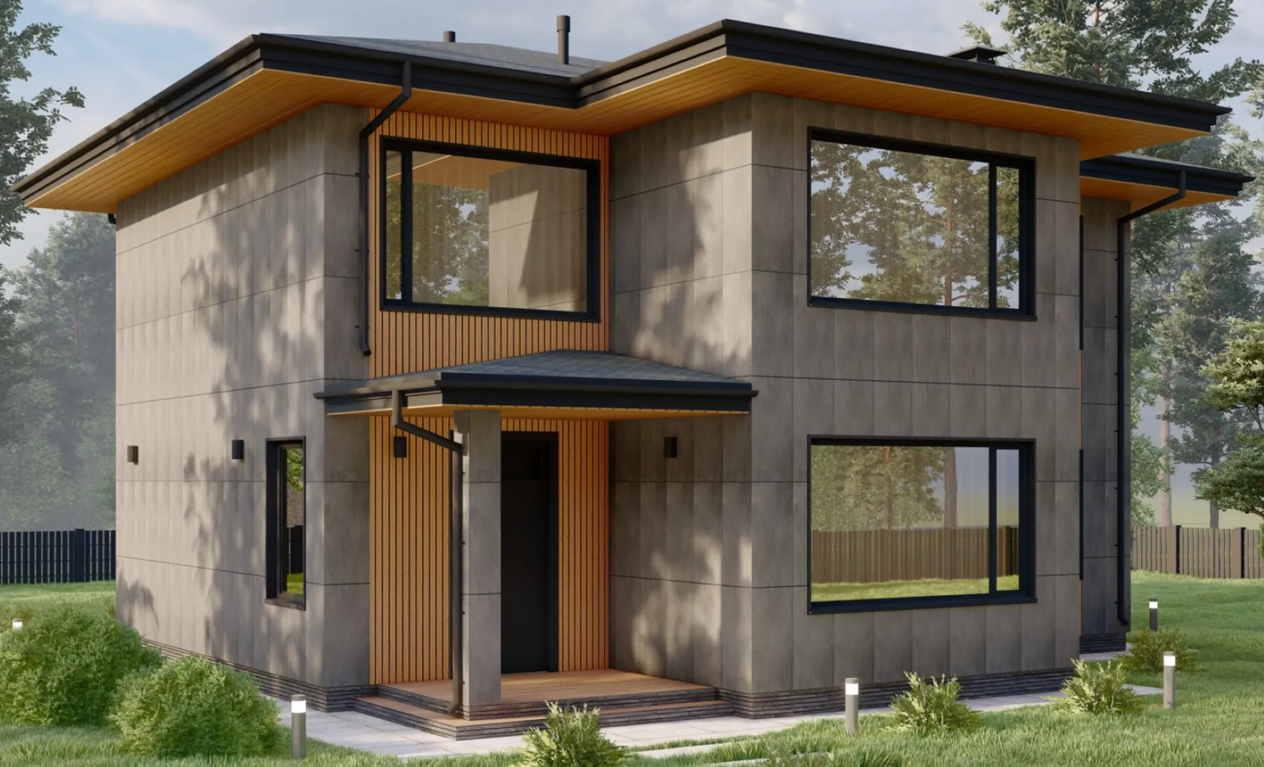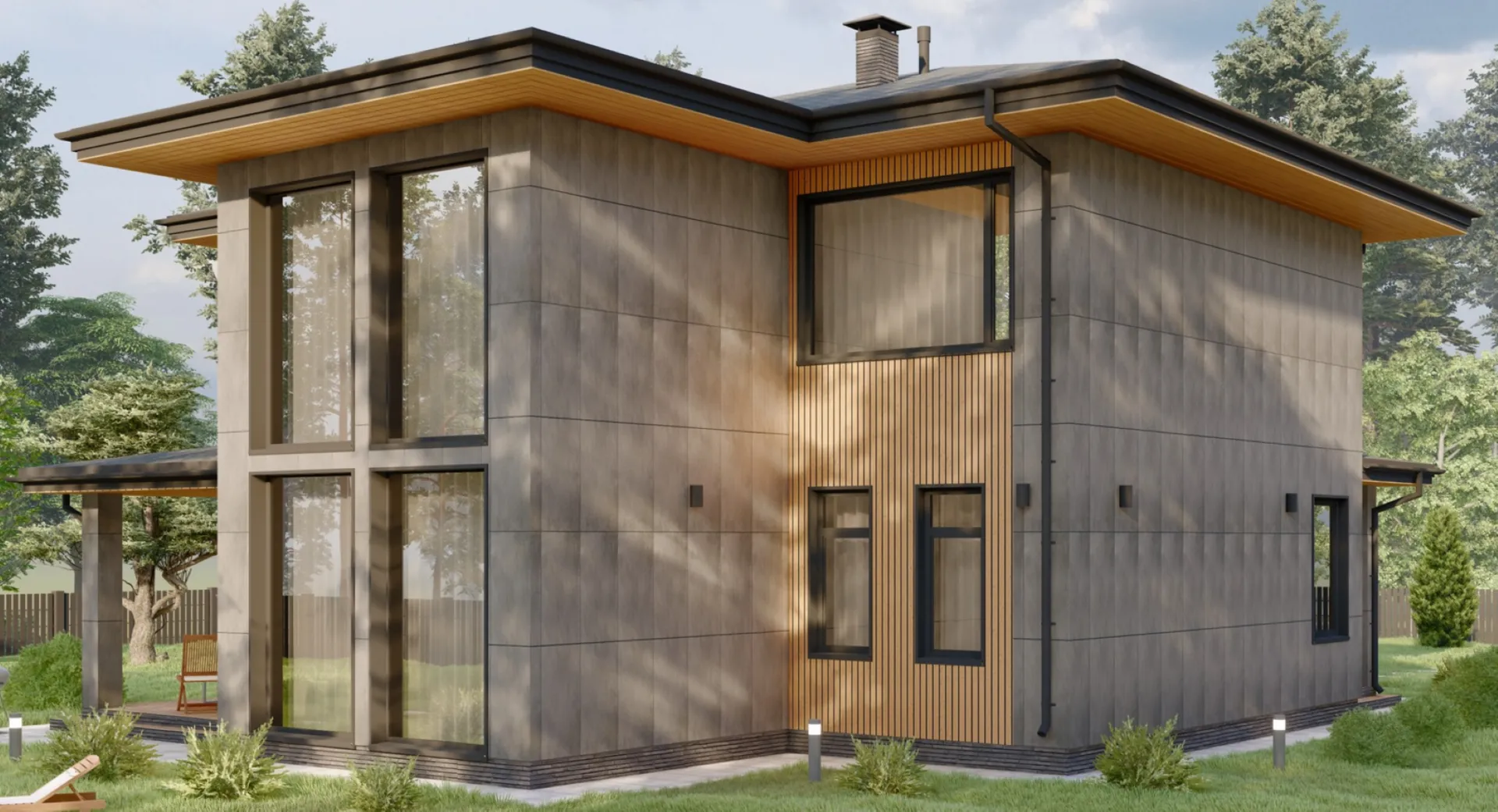 Стильный двухэтажный коттедж со вторым светом в стиле Райт S-228-2