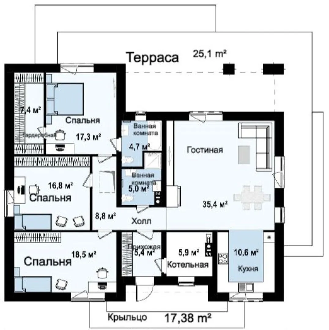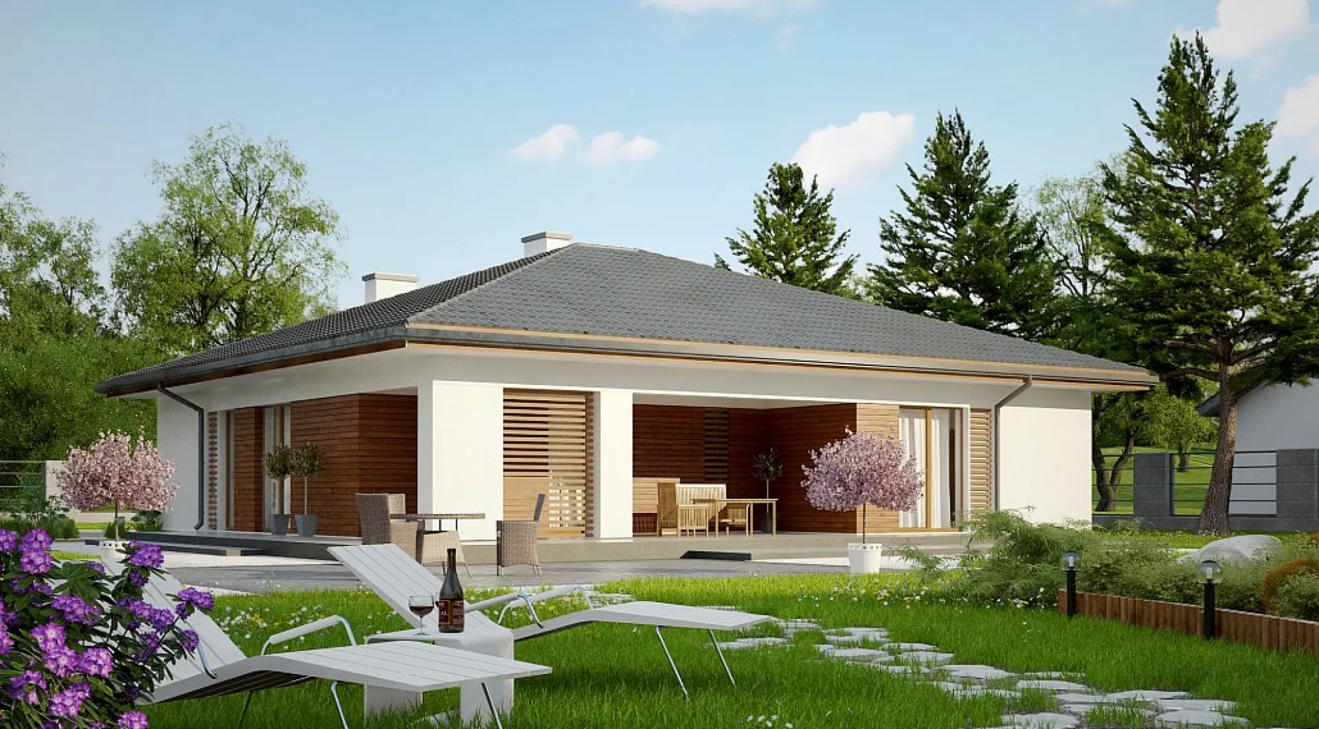 Стильный одноэтажный дом с уютной террасой S3-134-5 (Z321)