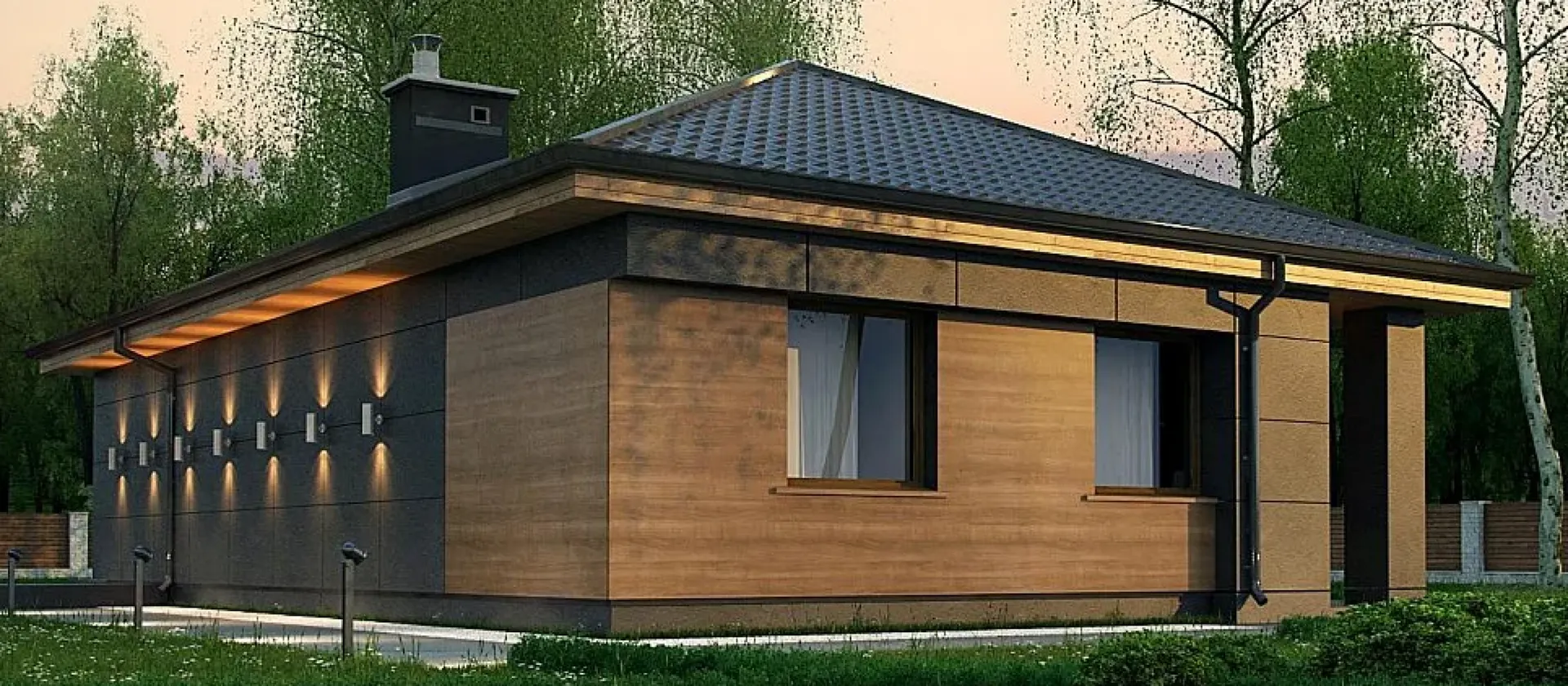 Одноэтажный дом в современном стиле THS-0014