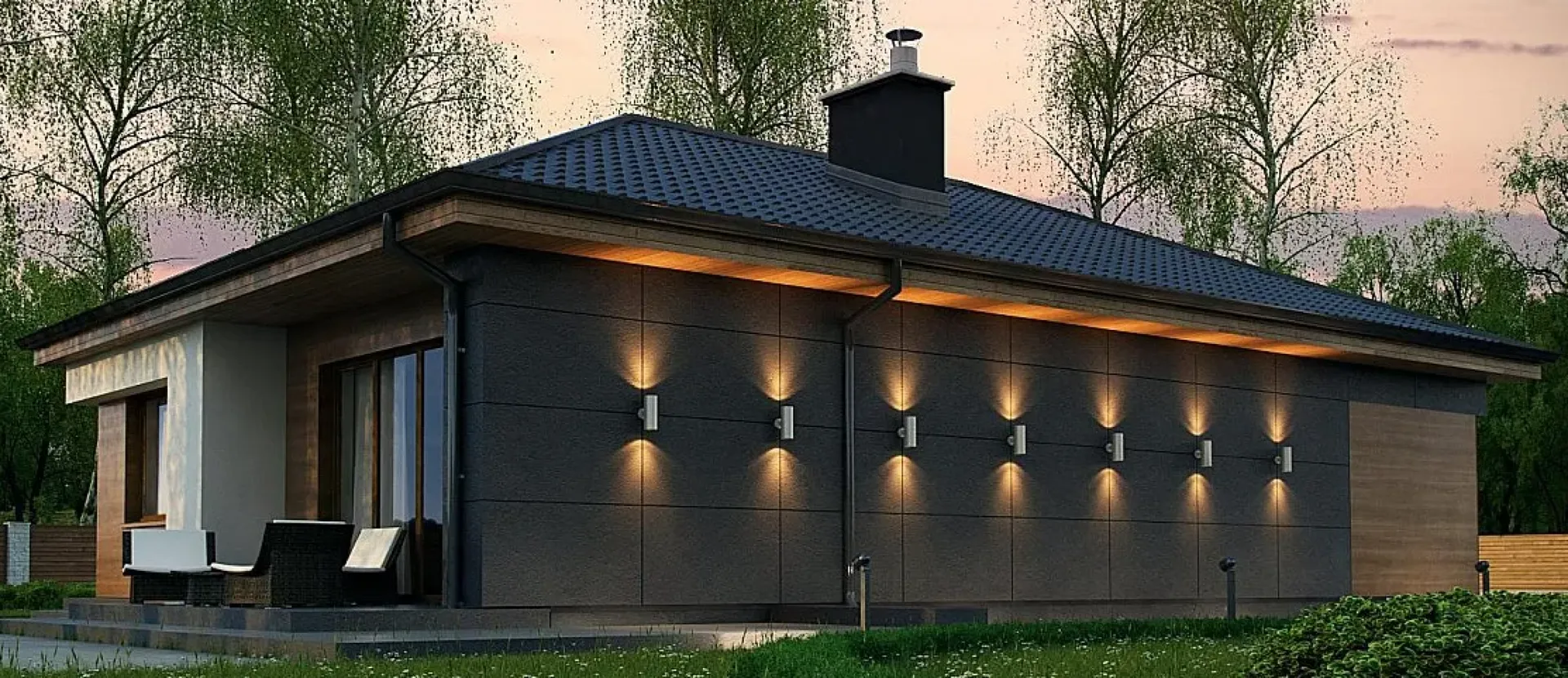 Добро пожаловать в ваш новый уединённый уголок, где стиль европейского дизайна встречается с комфортом и практичностью. Этот современный одноэтажный загородный дом, рассчитанный на небольшую семью, воплощает в себе все преимущества круглогодичного проживания. Чистые, строгие линии фасада, выполненные из газобетонных блоков, создают ощущение лёгкости и надёжности, а вальмовая, четырёхскатная крыша добавляет изящности и защищает от всех погодных условий. Внутри вам откроются просторные и светлые помещения, продуманные до мелочей: от просторной кухонной зоны с открытым планом до уютной гостиной, куда мягкое природное освещение льётся через большие окна. На уютной террасе, выходящей из живописно обустроенного сада, вы сможете проводить теплые летние вечера в тени, а в прохладные осенние и зимние дни – наслаждаться уютными вечерами с чашечкой горячего напитка. Всё, что нужно для беззаботной жизни— в одном доме: достаточное пространство для вашей семьи, современный европейский стиль, высочайший уровень изоляции и энергосбережения благодаря газобетонным материалам, а также удобный доступ к открытой террасе. Приглашаем почувствовать, как каждое утро начинается с яркого света, а каждая ночь завершается чувством уюта и спокойствия в этом неповторимом доме вашей мечты.