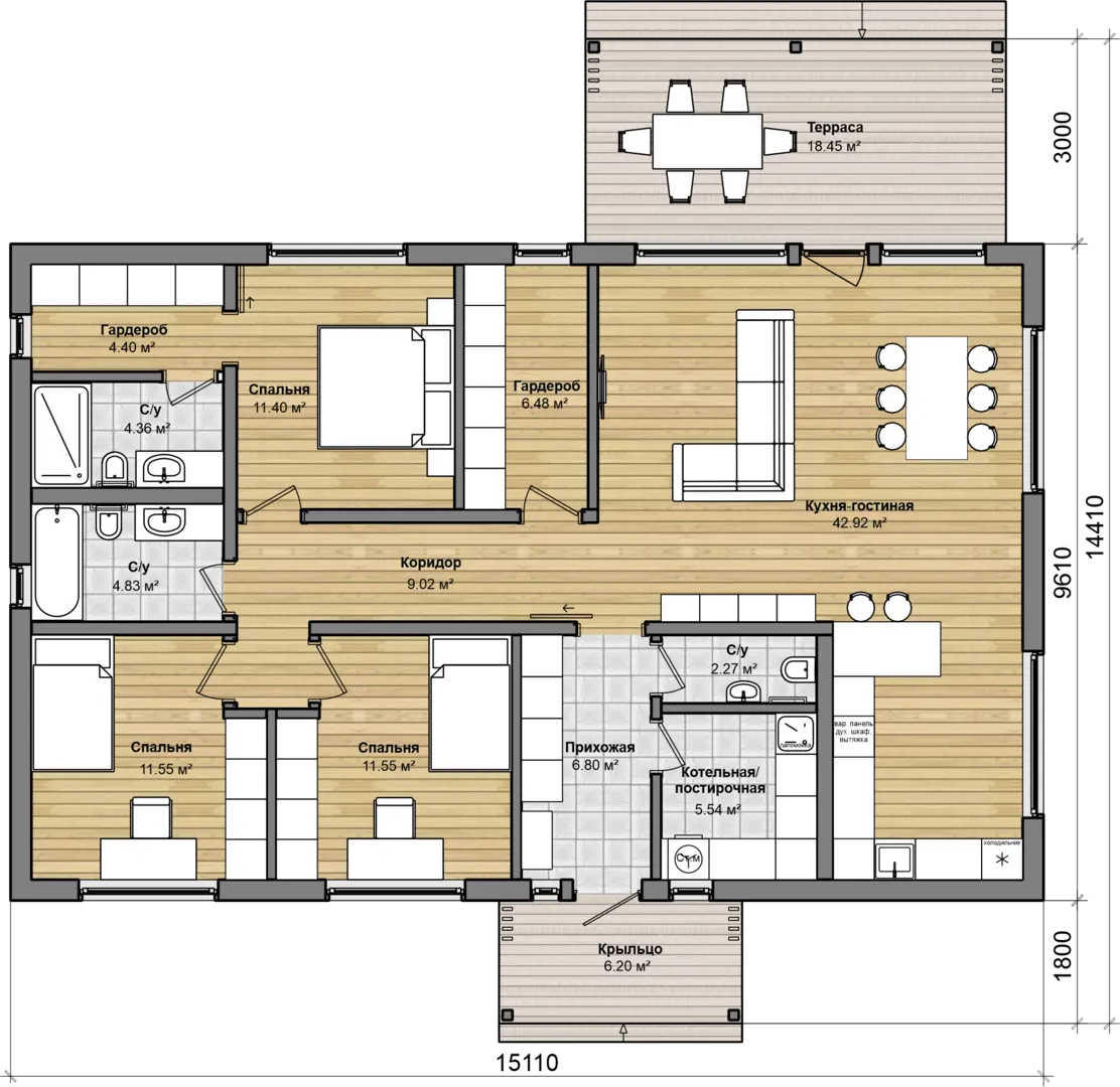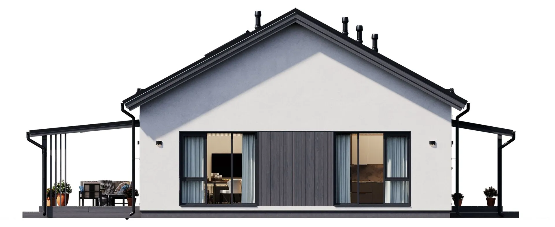 Тайгарт 121 – это уютный шедевр скандинавского стиля, созданный для комфортной жизни в любое время года. Дом сочетает элегантный минимализм с практичностью: благодаря крыше-двускатной конструкции и каркасно‑панельной технологии стены изолированы, а естественное освещение наполняет пространство. Гибкое планирование одного надземного этажа дарит чувство простора, а наличие чердачного помещения открывает неограниченные возможности для спальни, мастер‑класса или хранилища сезонных вещей. Сама площадка – это ваш личный уголок. Отдельная терраса с мягкими световыми элементами создает идеальное место для завтрака с видом на природу или вечерних уединенных собраний под звуки ветра. Внутри просторные комнаты с высоким потолком пропитывают душевные просторы, а открытая планировка обеспечивает приятное ощущение свободы. Теплые оттенки скандинавского декора, качественные материалы и продуманные детали делают Тайгарт 121 настоящим домом, где каждый момент превращается в источник вдохновения. Если вы ищете элегантный, энергоэффективный и уютный дом, в котором каждый элемент продуман до последней детали, Тайгарт 121 ждет вашего визита. Позвольте себе комфорт, стиль и возможность создавать воспоминания в сердце природы. Свяжитесь с нами – и мы приведём ваш идеальное место под солнцем в реальность.