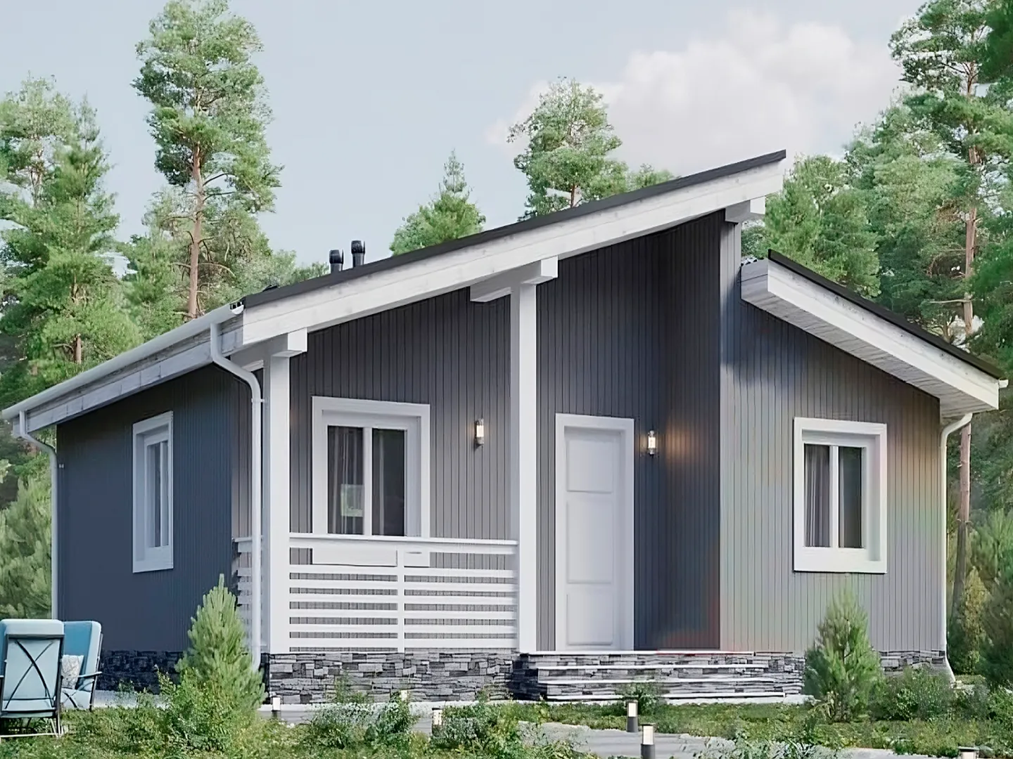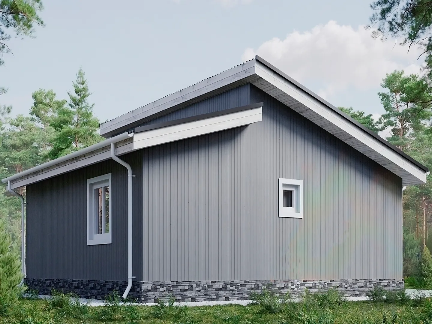 Тайный сундук — ваш уединенный уголок уединения в сердце природы, где каждая деталь пронизана духом минимализма. На первом же уровне открываются просторные и светлые помещения, идеально подходящие как для круглогодичного проживания, так и для создания домашнего лофта. Сочетание деревянных блоков и простого двускатного крыла добавляет неповторимую теплоту и естественную гармонию, создавая ощущение уюта, словно вы живёте в уютном деревянном домике, обрамлённом природой. Обернутый нежным светом фасад, лишённый лишних декоративных элементов, подчёркивает простоту и лаконичность стиля. Большая терраса, протяжённо выходящая за пределы внутреннего пространства, приглашает к прогулкам, созерцанию рассвета и уединенным вечеринкам под звездным небом. Внутри каждая стена, каждая плоскость продумана до мелочей — от удобного расположения комнат до рационального использования пространства, ведь здесь нет балконов, веранд и лишних пристроек, которые могут отвлекать от основного идеала простоты. Этот дом не просто место для жизни; это убежище, где каждый момент наполнен спокойствием и гармонией. Он приглашает вас раскрыть тайнику, спрятанный в его стены, и испытать истинный комфорт в сочетании современного минимализма с сердцем деревянного материала. ТАЙНЫЙ СУНДУК — ваш новый дом, где каждая деталь говорит сама за себя.