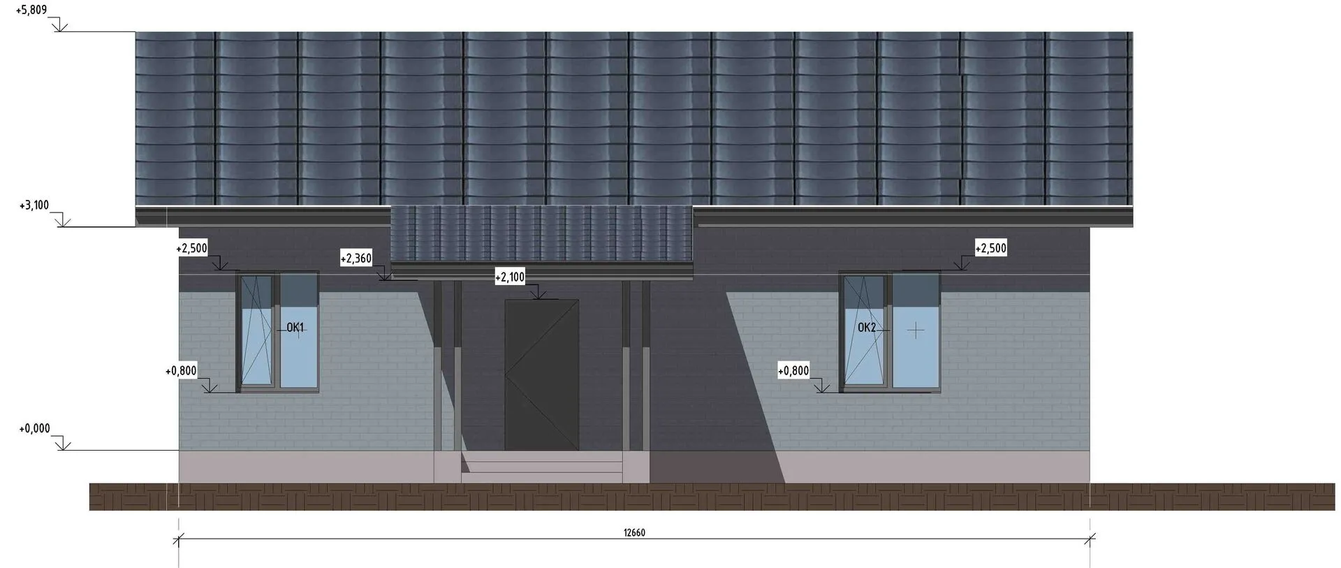 Одноэтажный кирпичный дом BUSINESS — 131m2 Красный облицовочный кирпич
