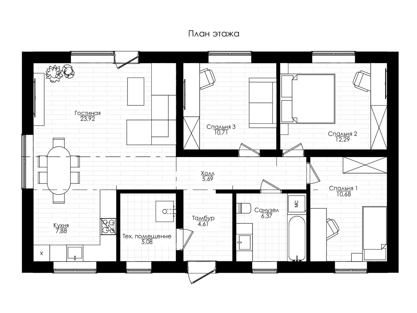 Проект одноэтажного каменного дома