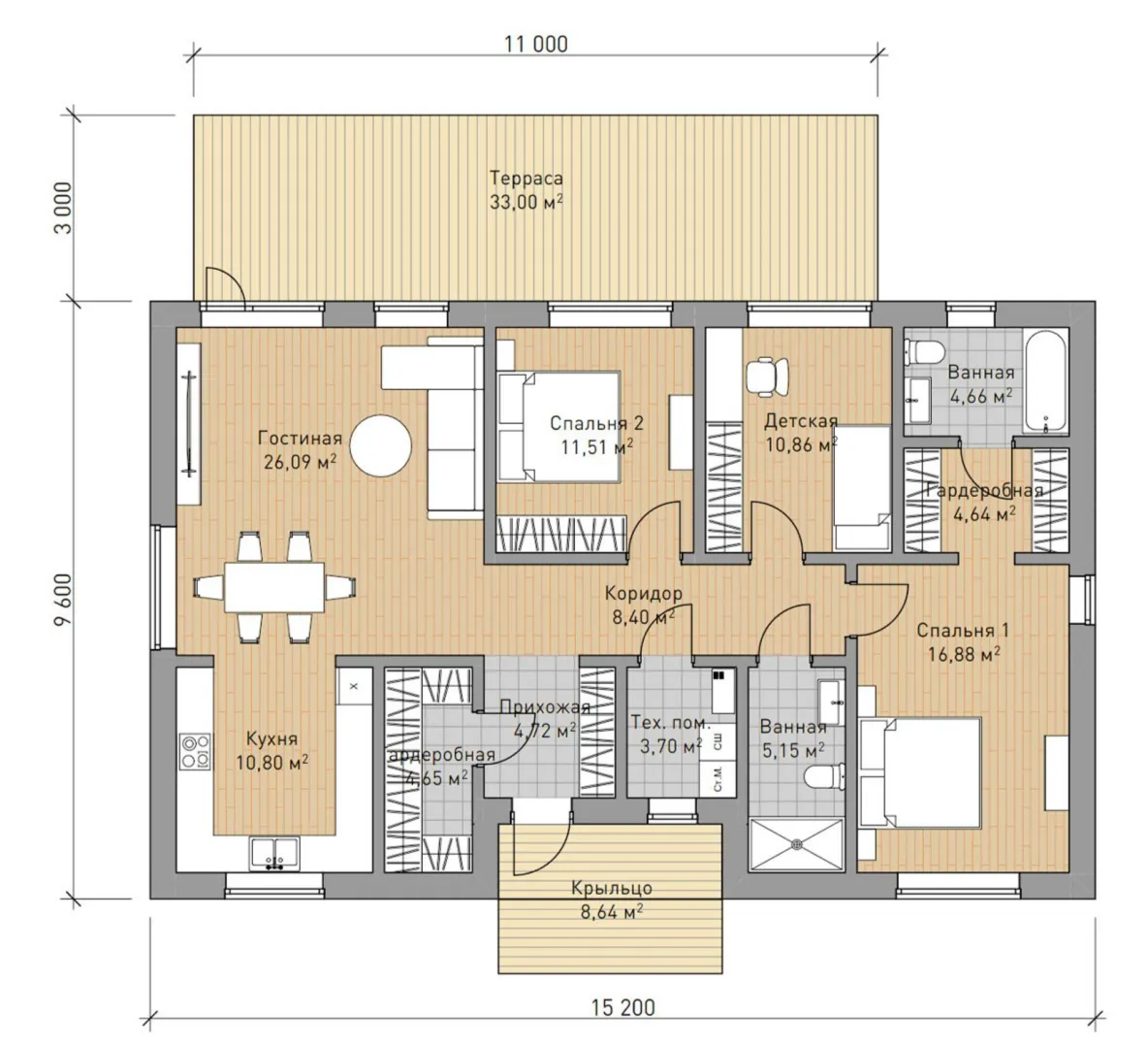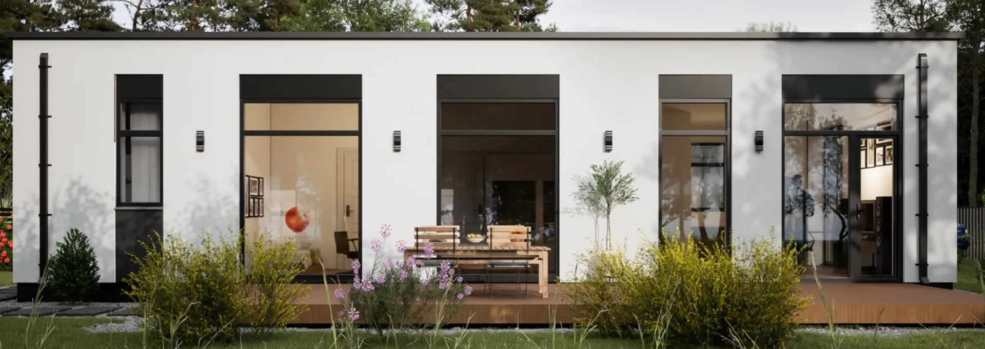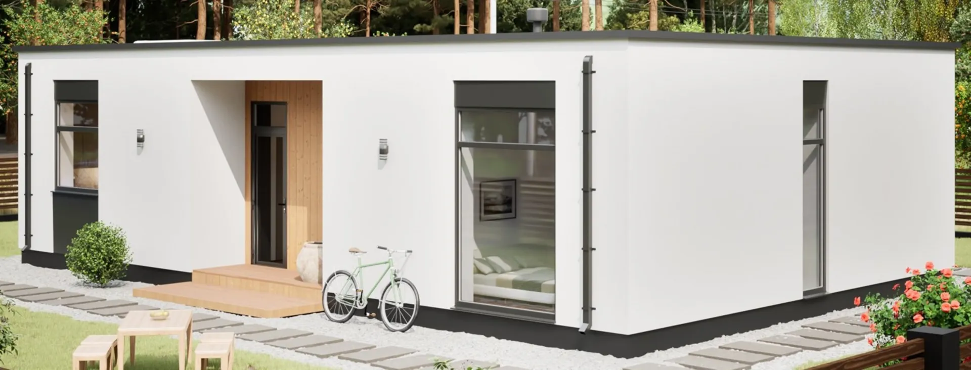 **Вена‑120‑114 – уютный уголок в центре города, где скандинавская простота встречается с современным комфортом.** Одноэтажный дом, идеально подходящий для круглогодичного проживания, радует открытым фасадом из легкого polystyrosbeton‑бетона, который сохраняет тепло в холодные зимы и прохладу летом. Элегантная плоская крыша подчёркивает лаконичную, но стильную внешность, создавая визуальный акцент в городской среде. С внутренней стороны Вена‑120‑114 излучает свет и простоту. Открытая планировка без перегородок позволяет вам гибко организовать пространство под свои нужды – от семейного жилого уголка до домашнего офиса. Просторная терраса, выстроенная вокруг дома, становится идеальным местом для завтраков на свежем воздухе, вечерних посиделок или лёгкого сада, а отсутствие балконов и веранд делает комнату более светлой и просторной. Этот дом – сочетание практичности и эстетики. Если вам нравится скандинавский дизайн, цените спокойствие и тепло, Вена‑120‑114 станет вашим идеальным выбором. Создайте уют, в котором каждый уголок говорит о высокой качестве, простоте и радости жизни.