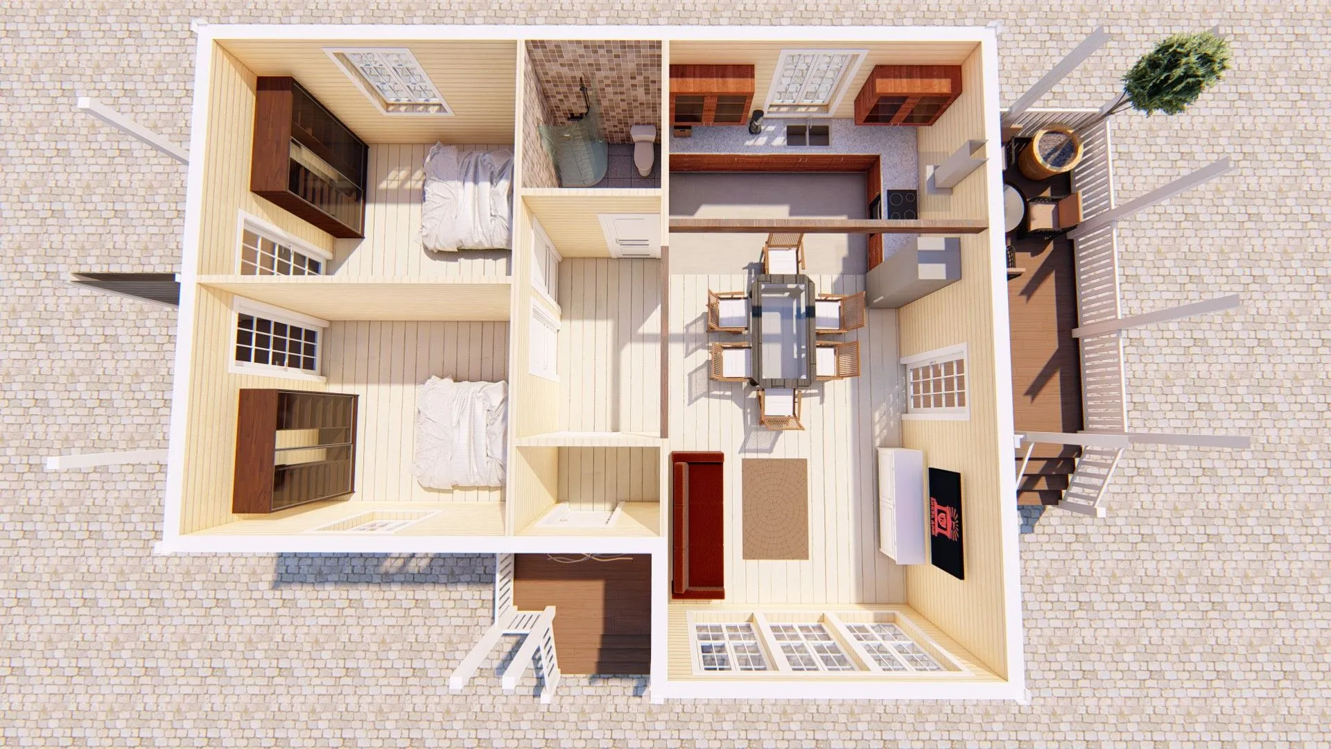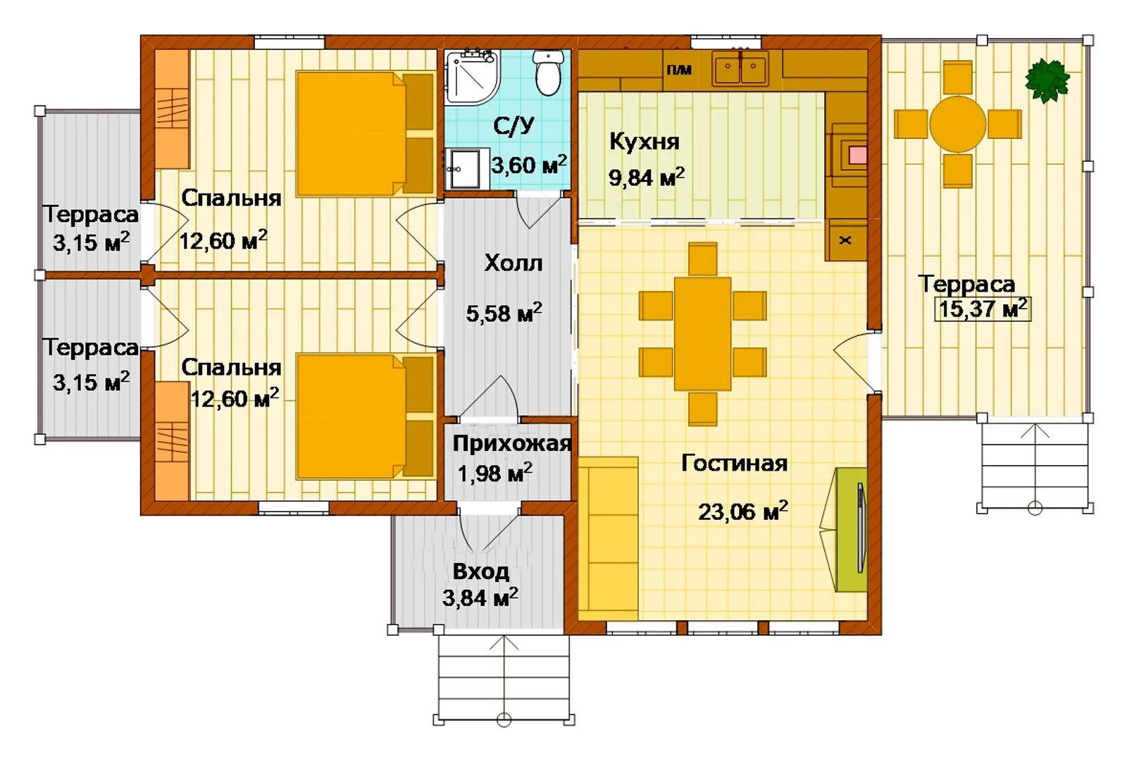 Добро пожаловать в «Вереск» – уютный уголок для круглогодичного проживания, где каждая деталь создана с мыслью о вашем комфорте. Этот одноэтажный дом сочетает в себе теплоту и простоту американского и канадского стилей, придавая ему дружелюбный, но элегантный облик. Просторные внутренние пространства, открытые планировки и светлые, воздушные помещения делают «Вереск» идеальным местом для семьи, где каждый найдет уголок по душе. Благодаря деревянному каркасу и классической двускатной крыше, дом выглядит не только современно, но и гармонично вписывается в любой природный ландшафт. Крупная терраса приглашает к вечерним беседам и утренним шажкам под звуки природы, а просторная гостиная с большим окном наполняется дневным светом, создавая ощущение простора и свободы. Оборотных балконов и веранд пока нет, но они не ограничивают простор, а добавляют ощущение открытости и легкости. «Вереск» идеален для тех, кто ценит уют, практичность и возможность жить где угодно, не забывая о деталях: от теплового изоляционного материала до продуманной планировки. Несмотря на отсутствие прикованного гаража, дом легко обустроить под ваши нужды. Откройте для себя комфорт, который дарит «Вереск» – дом, где каждый день начинается и заканчивается с улыбкой и ароматом свежего ветра.