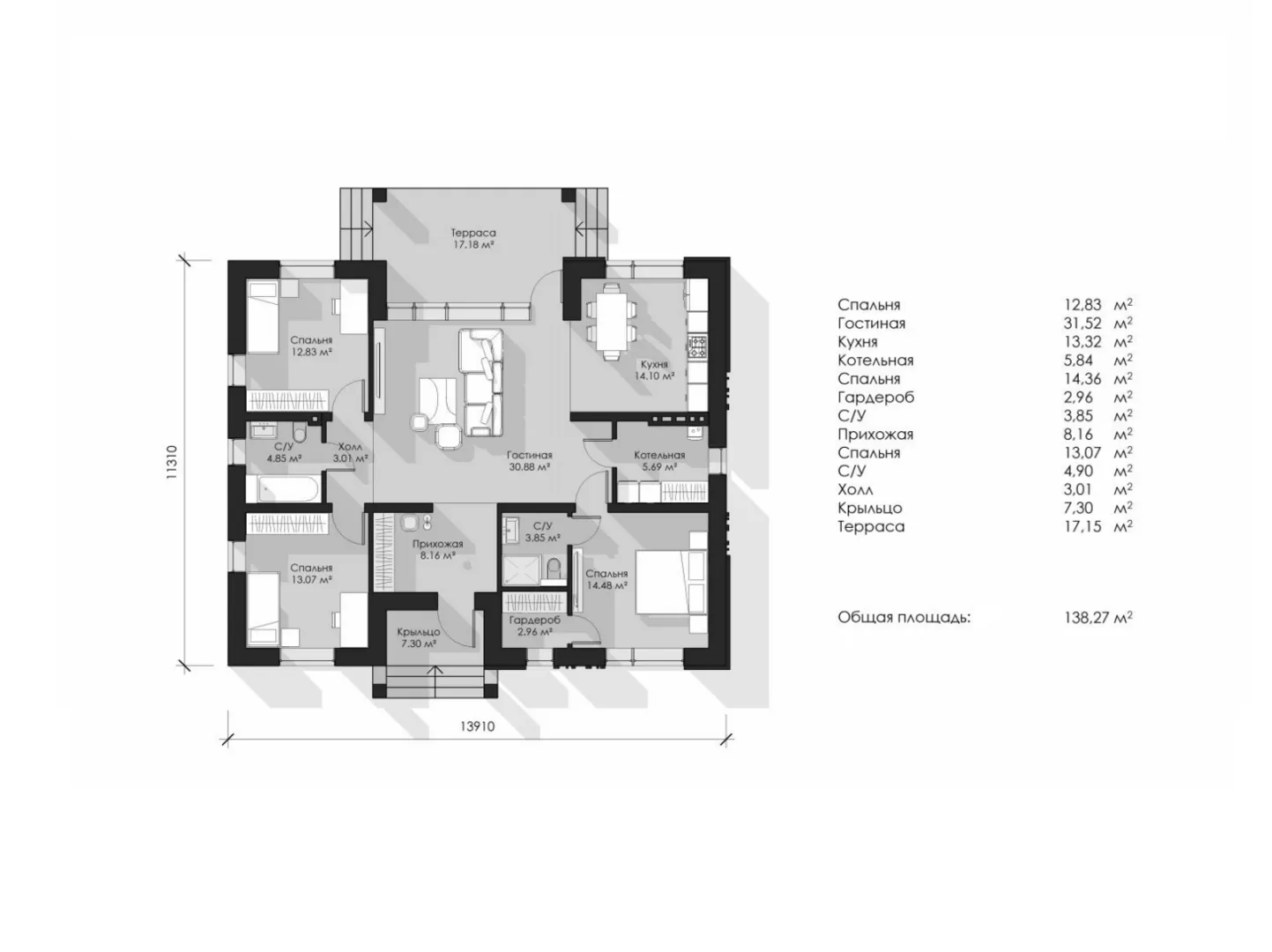Площадь дома 138 м2
