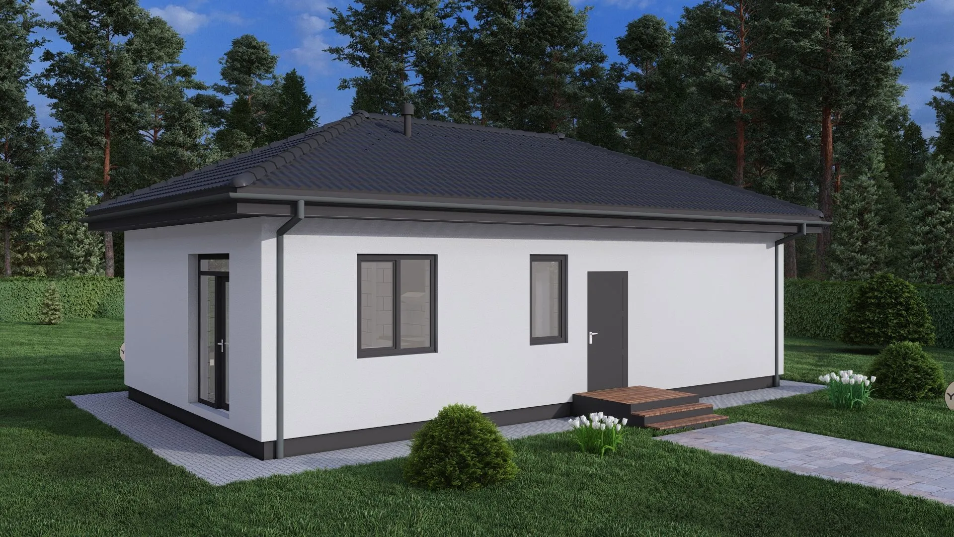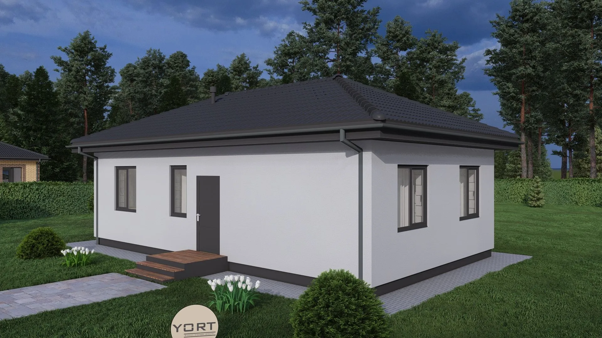 Простор и умиротворение воплощены в доме Y‑61. Это одноэтажная жемчужина минимализма, где каждый квадратный метр продуман и наполнен светом. Архитектура в стиле лаконика подчёркивает изящный контур: строгие линии, лаконичные фасады из газобетонных блоков, которые излучают тепло и энергоэффективность. Четырёхскатная вальмовая крыша придаёт дому благородный геометрический вид, а вместительный чердачный отсек может превратиться в уютную гостиную, личный кабинет или творческое пространство. Дом рассчитан на круглогодичную жизнь – тепло сквозь каменные стены, уединённые зоны и достаточная изоляция делают комфортным проживание в любое время года. Отсутствие балконов, веранд и внешних автостоянок освобождает пространство, позволяя вам сосредоточиться на создании домашнего уюта внутри. Просторно расположенные комнаты открываются большими окнами, наполняя интерьер природным светом и создавая ощущение простора и лёгкости. Y‑61 – это место, где минимализм превращается в гармонию и где каждый элемент подчиняется идее простоты и практичности.