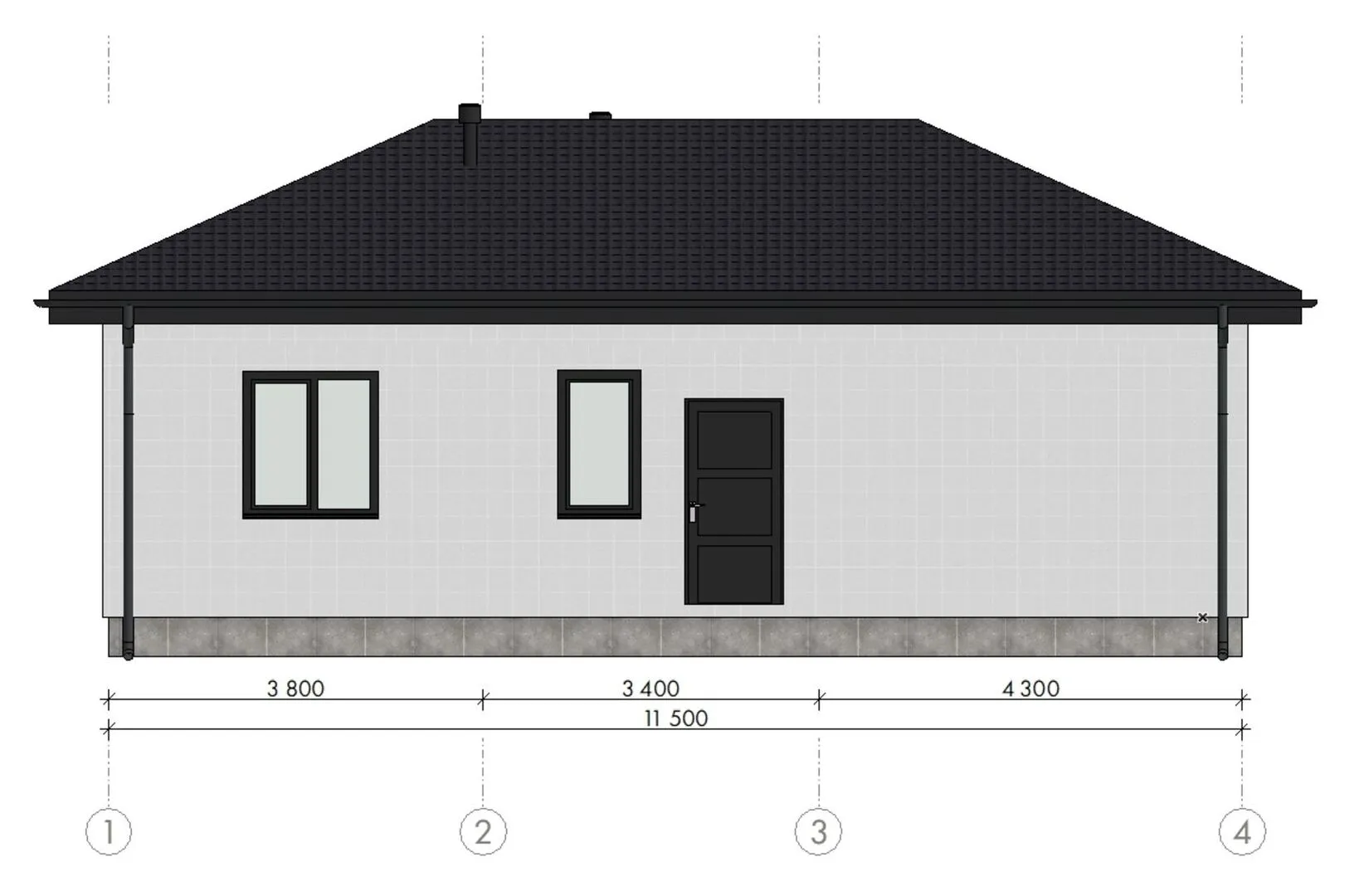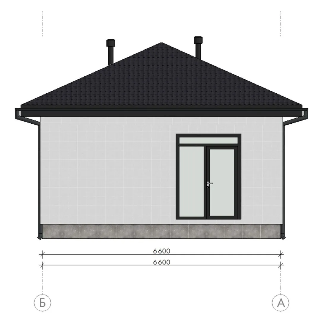 Одноэтажный дом с четырехскатной крышей