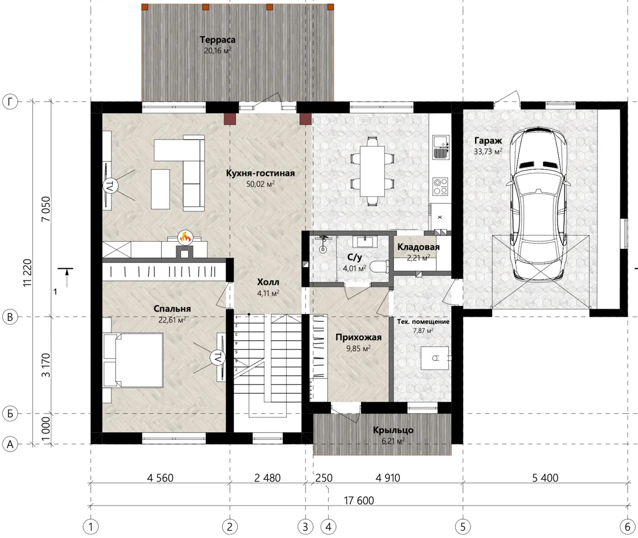 Совмещенная кухня-гостиная