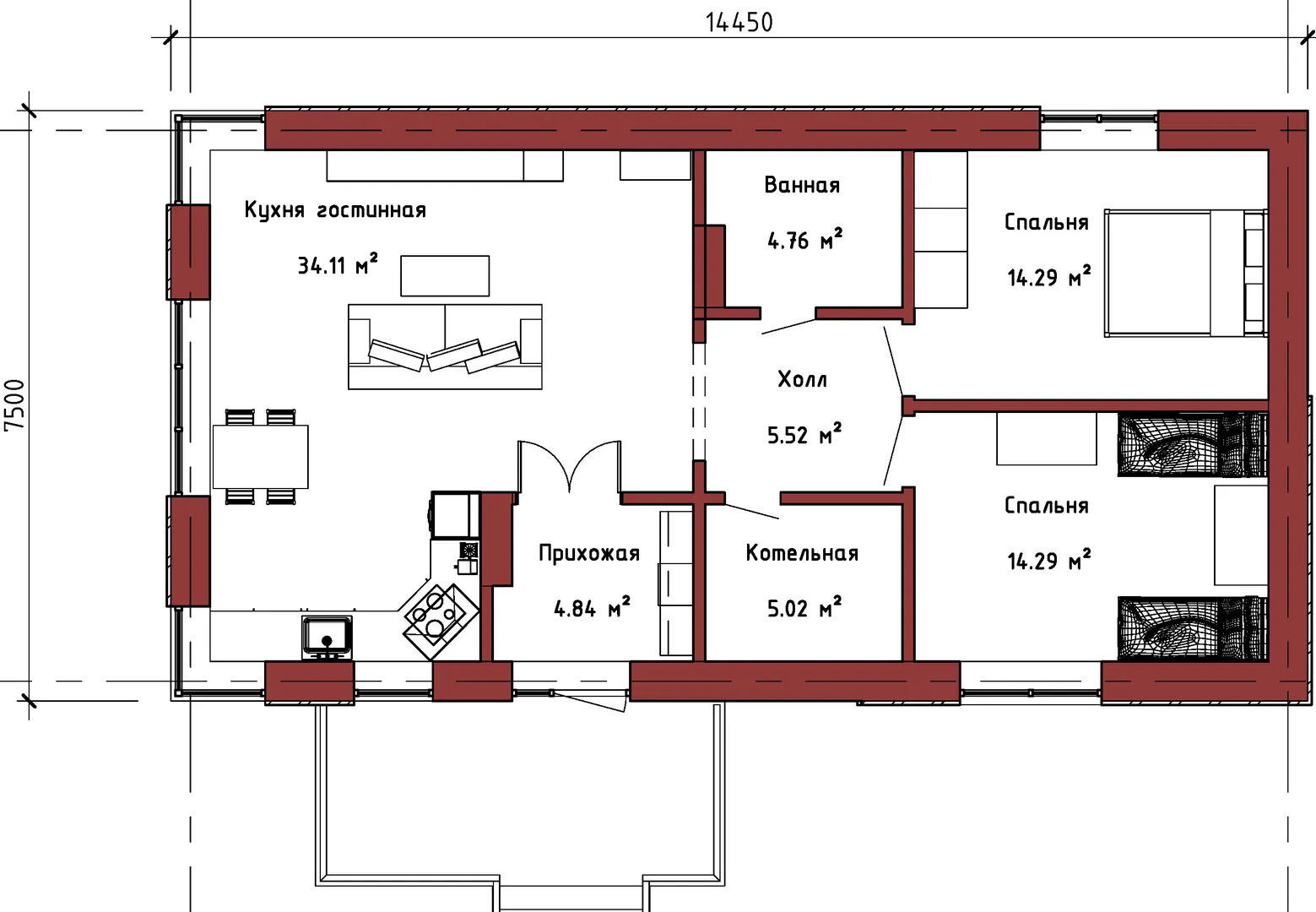 **Дом «АЯН‑2» — ваш уютный уголок в сердце природы** Представьте себе спокойствие и гармонию, где каждый уголок пронизан классическим стилем, а простота одной надземной этажности дарит ощущение открытости и свободы. Дом «АЯН‑2» создан для тех, кто ценит тихую жизнь в окружении зелёных просторов, но при этом желает жить круглогодично без лишних хлопот. Величественные оконные проёмы пропускают естественный свет, создавая в помещении ощущение пространства, а при ярчайших солнечных днях открывается завораживающий вид на ландшафт за окнами. **Итончённый дизайн и надёжные материалы** Эта резиденция сочетает в себе классику и современные технологии. Внешние стены выполнены из полистиролбетона — материала, дарящего тепло, шумоизоляцию и долгий срок эксплуатации без лишнего ухода. Кровля выполнена комбинированным способом, что обеспечивает надёжную защиту от непогоды и придаёт дому утончённый контур. Несмотря на отсутствие балконов, террас и веранд, интерьер дома пропитан светом и лёгкостью, а открытая планировка делает каждый уголок гостеприимным и функциональным. **Ваш новый образ жизни уже ждёт** «АЯН‑2» — это идеальный дом для семьи, которая хочет совместить комфорт с природой. Одна этажа позволяет удобно устроить пространство для всех, а отсутствие гаража открывает перспективу оформить дополнительную жилую или хозяйственную площадью по собственному вкусу. Приглашаем вас открыть для себя этот уголок спокойствия, где каждый день начинается и заканчивается в окружении уюта и тишины. Если вы ищете место, где сердце успеет отдохнуть, а душа почувствует себя дома, «АЯН‑2» готов стать вашим новым приютом.